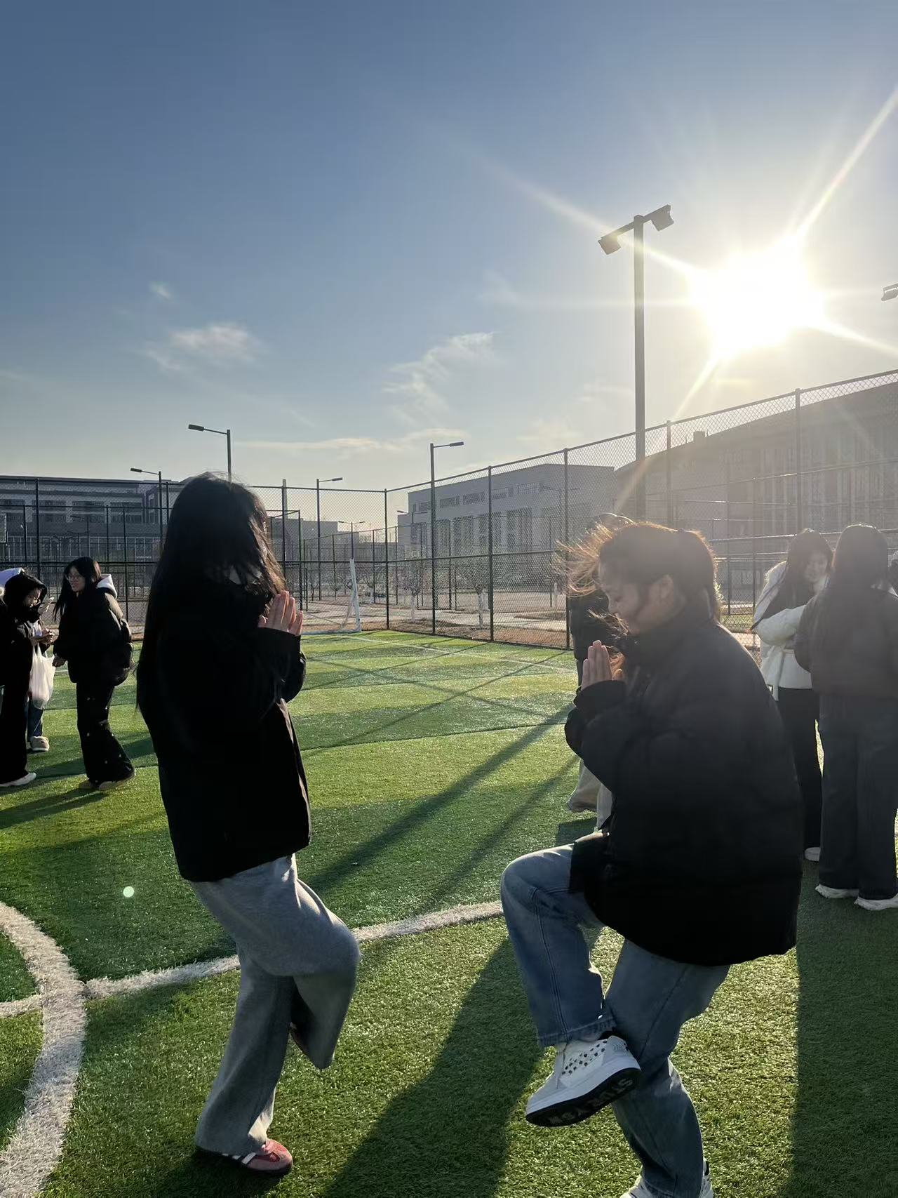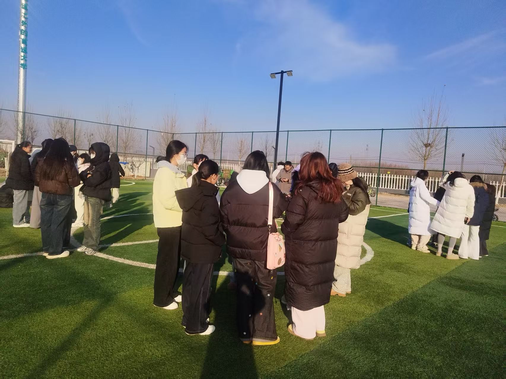 活动前期,两班班委通过班级企业微信、指尖派等平台全方位宣传,详细介绍活动形式、报名方式及注意事项,广泛动员同学们积极参与,为活动的顺利开展奠定了坚实基础。活动当天,体育公园内氛围热烈,同学们早早到场,脸上洋溢着期待的笑容,迅速围拢成一个个小团体交流畅谈,现场热闹非凡。