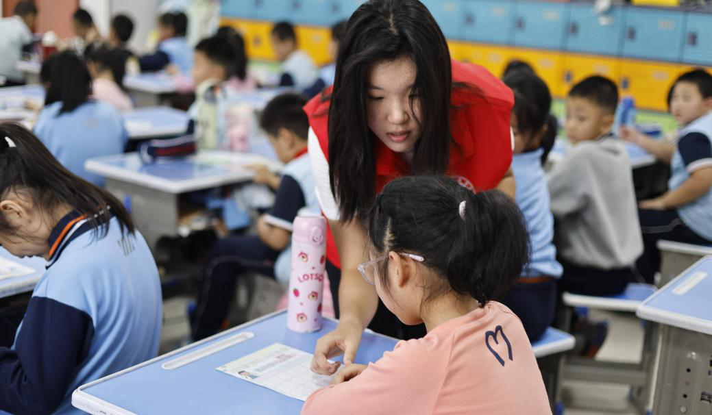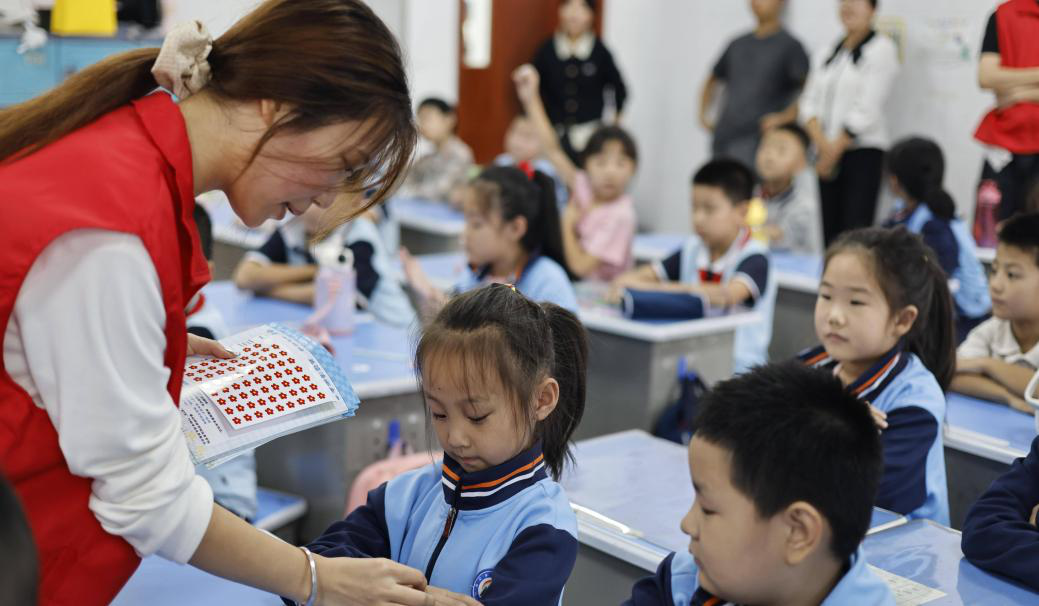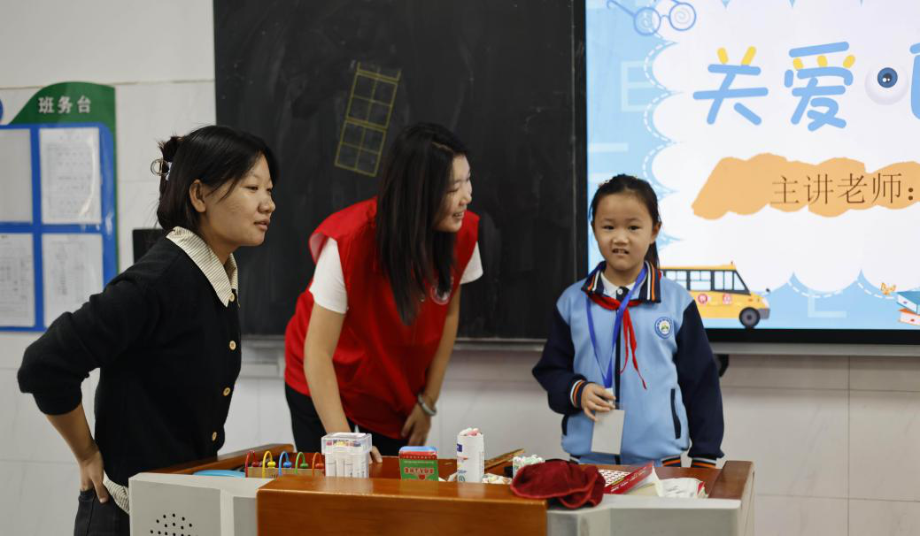下课铃响了,但孩子们的热情依旧高涨。许多孩子围在志愿者身边,分享自己的护眼计划。这场别开生面的护眼课堂,不仅让孩子们学到了保护眼睛的科学方法,更在他们心中播下了关爱视力的种子。