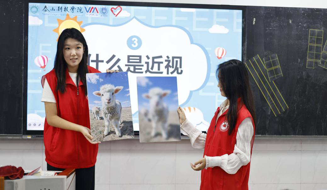 编者按:近日,国家卫健委、教育部等多部门联合部署开展2025年全国儿童青少年近视防控宣传月活动,强调要把保护视力融入学校日常教育和家庭生活。在这一背景下,远景学院关“EYE”行动专项志愿服务队走进东岳中学兴隆校区小学部,为孩子们带来一场别开生面的护眼科普课堂,用专业知识与趣味互动,帮助孩子们学会科学用眼、守护明亮视界。