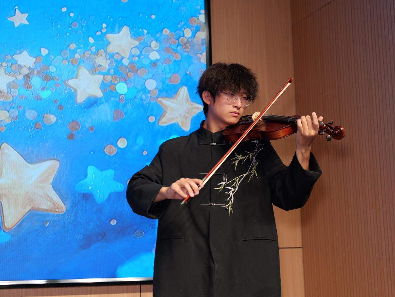 暖场视频《我们的选择》带我们“穿越”了一次——从初高中校园一路走到泰科,记录了一步步迈向大学新生活的真实心情。视频结束的瞬间,2025级荣誉学生张巍泷同学的小提琴声温柔响起,中英文主持人梁左航和邹琪正式宣布:“欢迎登船!Welcome aboard!”——我们的远景之旅,正式出发!