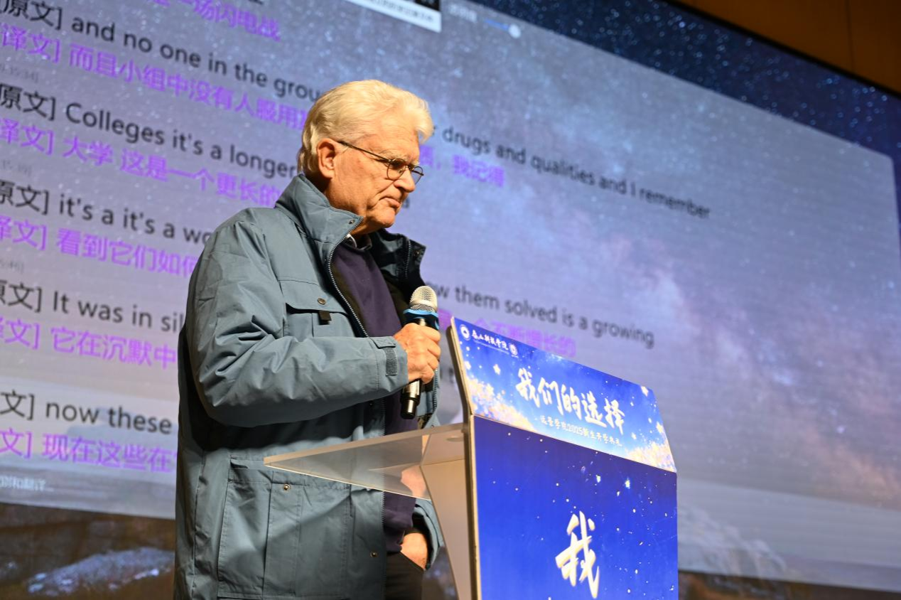 名誉院长Hans P.M. Adriaansens教授在一片掌声中走上台,为2025级荣誉学生颁发了荣誉学生纪念卡。他的寄语直指成长的核心:真正的教育关乎“成为谁”。他认为,通识与博雅教育所提供的广阔视野,是同学们认识世界、并最终认识自己的一面镜子。他为此感到高兴,因为远景学院正为此而生。
