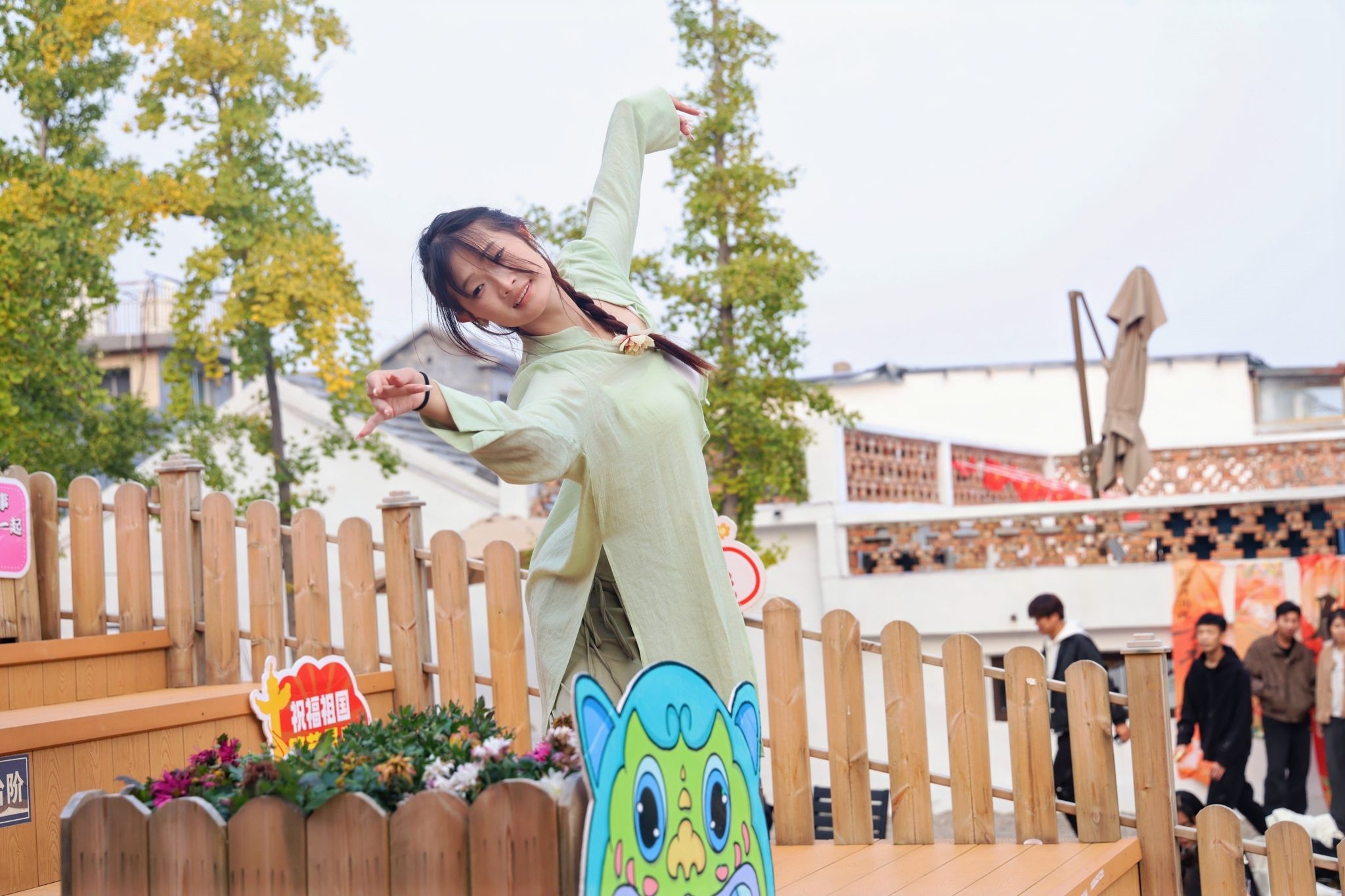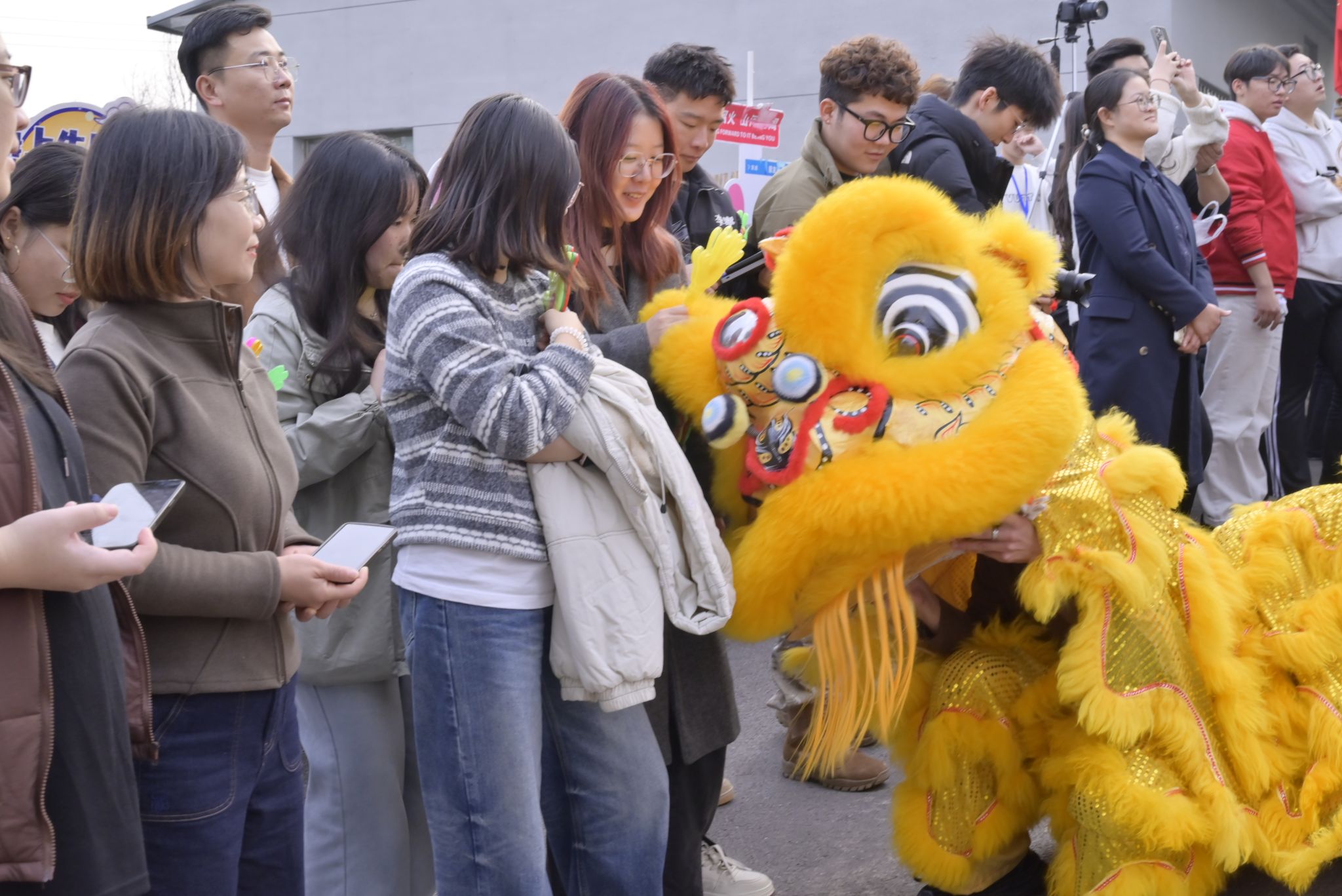 下午16:00时,李启隆(育英书院/建筑工程学院)、李昊(育英书院/建筑工程学院)带着乘风狮,李梓博(敢当书院/行政管理学院)、姜奇承(新言书院/大数据学院)带着瑞麟祥尾狮,红黄两只狮子以热闹的表演拉开大学生社会实践基地揭牌仪式的序幕,灵动的雄狮腾跃翻转,赢得现场阵阵喝彩。敢当书院“舞感”·中国舞工坊的主理人马张燕(敢当书院/行政管理学院)翩然登台。随后,学生志愿者代表铿锵有力地宣读了《一颗石榴·大学生乡村驿站倡议书》,“做田野的学生、做持续的陪伴、做务实的志愿”,这是泰科学子用青春赋能乡村的坚定誓言。谢玉兴、赵兴新、刘睿智、白军彭共同为“大学生乡村实践基地”揭牌,标志着建筑工程学院与敢当书院在白马石村的融合实践进入常态化、机制化新阶段。