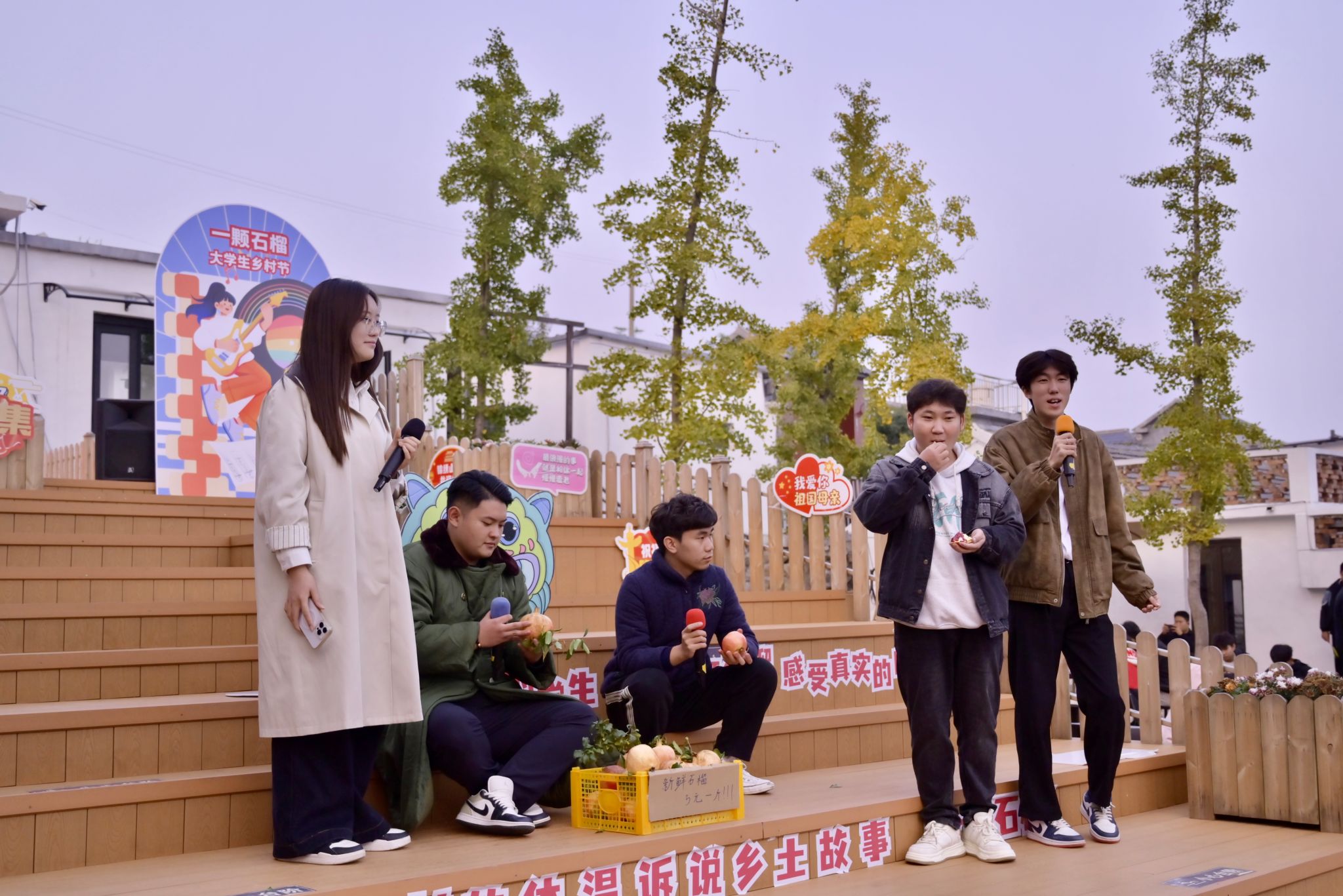 “待到石榴红透时,我们再相聚。”这句源于此前校地互动的约定,如今在白马石村成为现实。建筑工程学院与敢当书院以石榴为媒,将迎新课堂延伸至村落街巷,推动双院融合从理念走向实践,从校园走向田野。如今,师生们带着这份承诺,将白马石村的烟火气融入青年学生的迎新晚会。