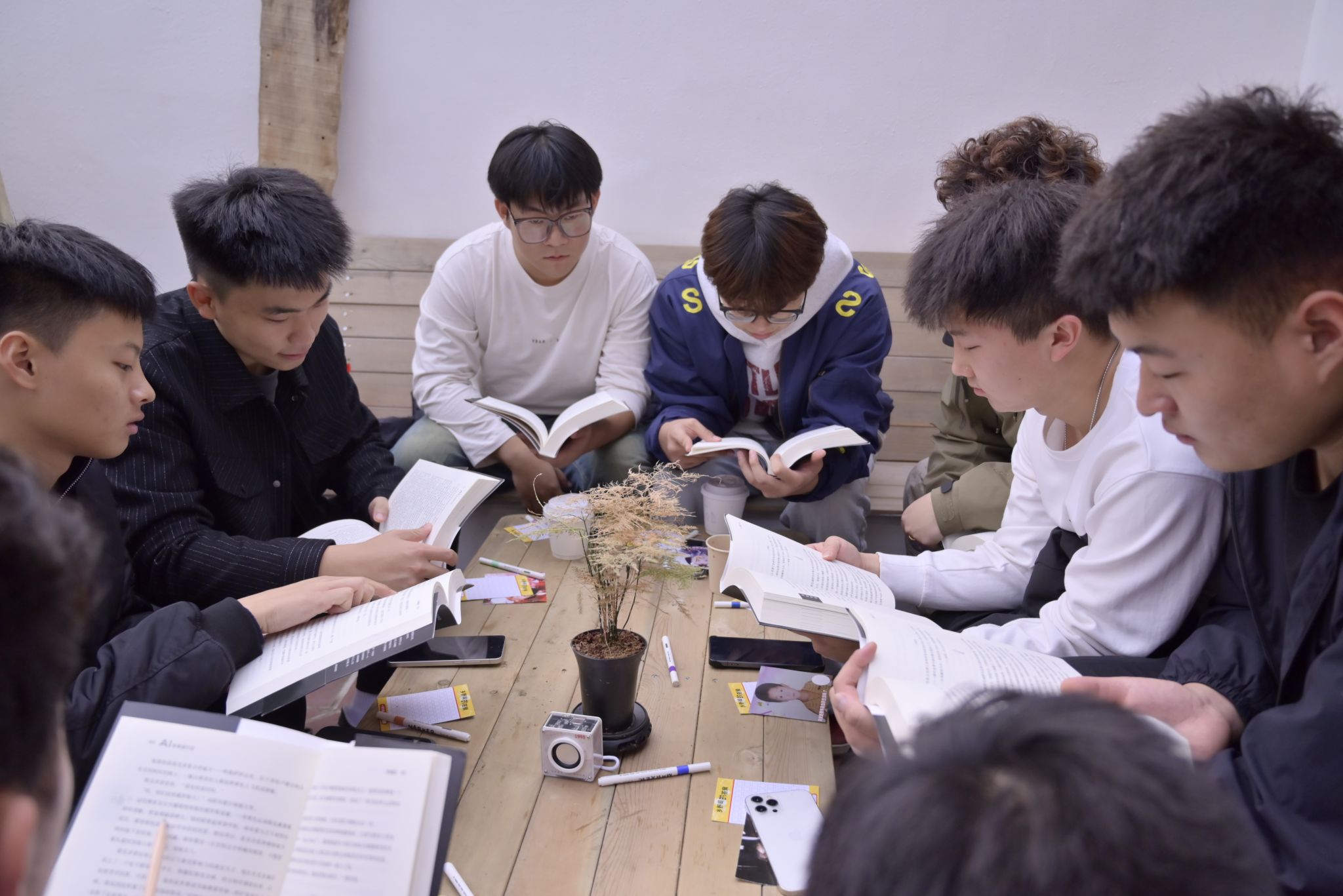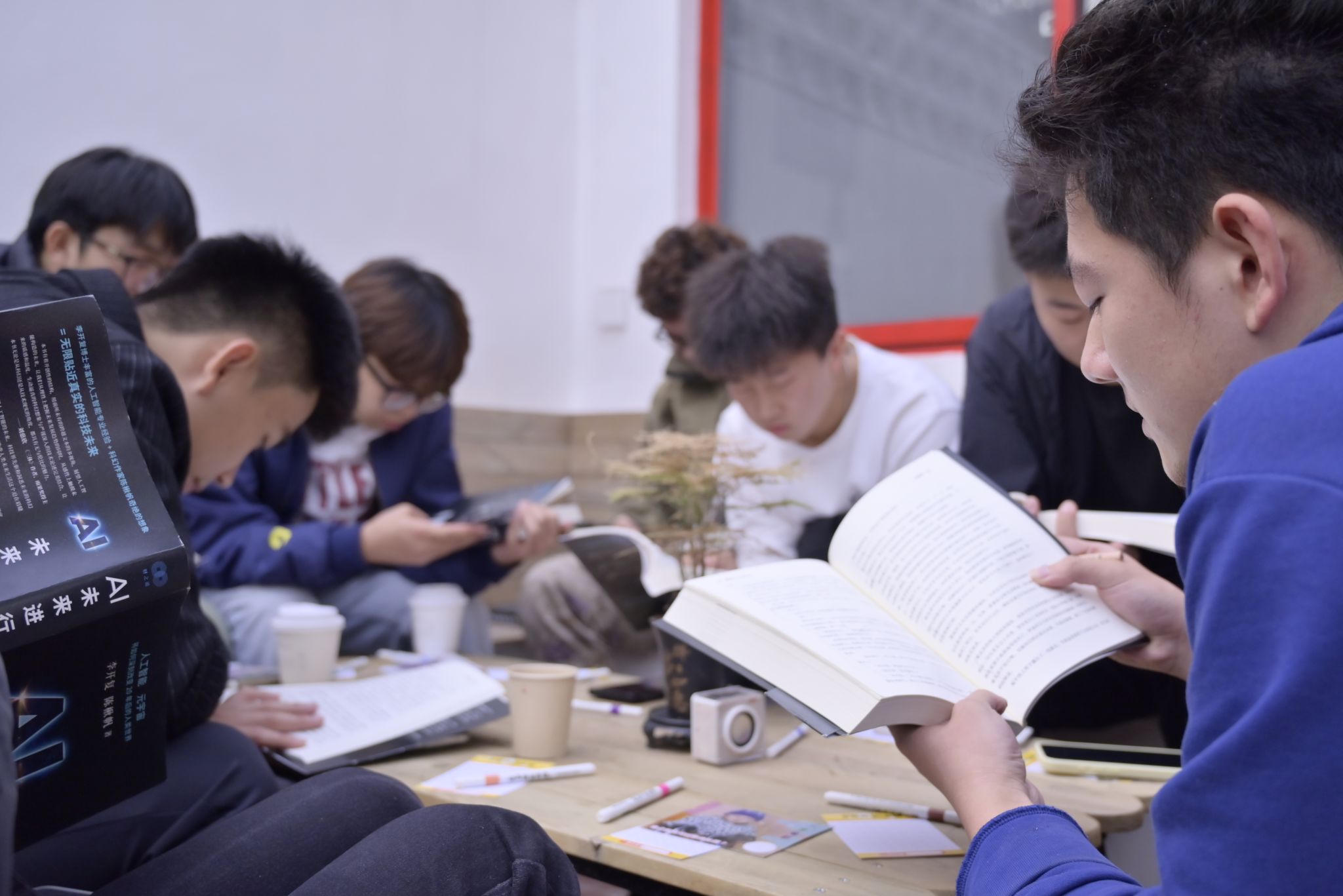 与此同时,面包店里的大咖阅读同步进行,同学们围绕《AI·未来》书目中的“AI与幸福”篇章展开深度交流,主持人带领着大家一起读书结合大咖读物分享着自己的感悟,“原来AI智能在改善社会的情况下也大大的造福了我们。”活动还为同学们准备了一份“时空礼物”,学长学姐们将回答写在NFC芯片上,回应他们收集来的童年疑问。“这是我小时候的照片,居然有学长来回答我小时候的疑问,太惊喜了!”汶阳书院/建筑工程学院的张全鑫惊喜地分享。随后,面包店店员赵晓甜女士讲述了这家面包店与幸福的故事:“我们的老板在开这家面包店的同时,也在等一个他喜欢的人。”