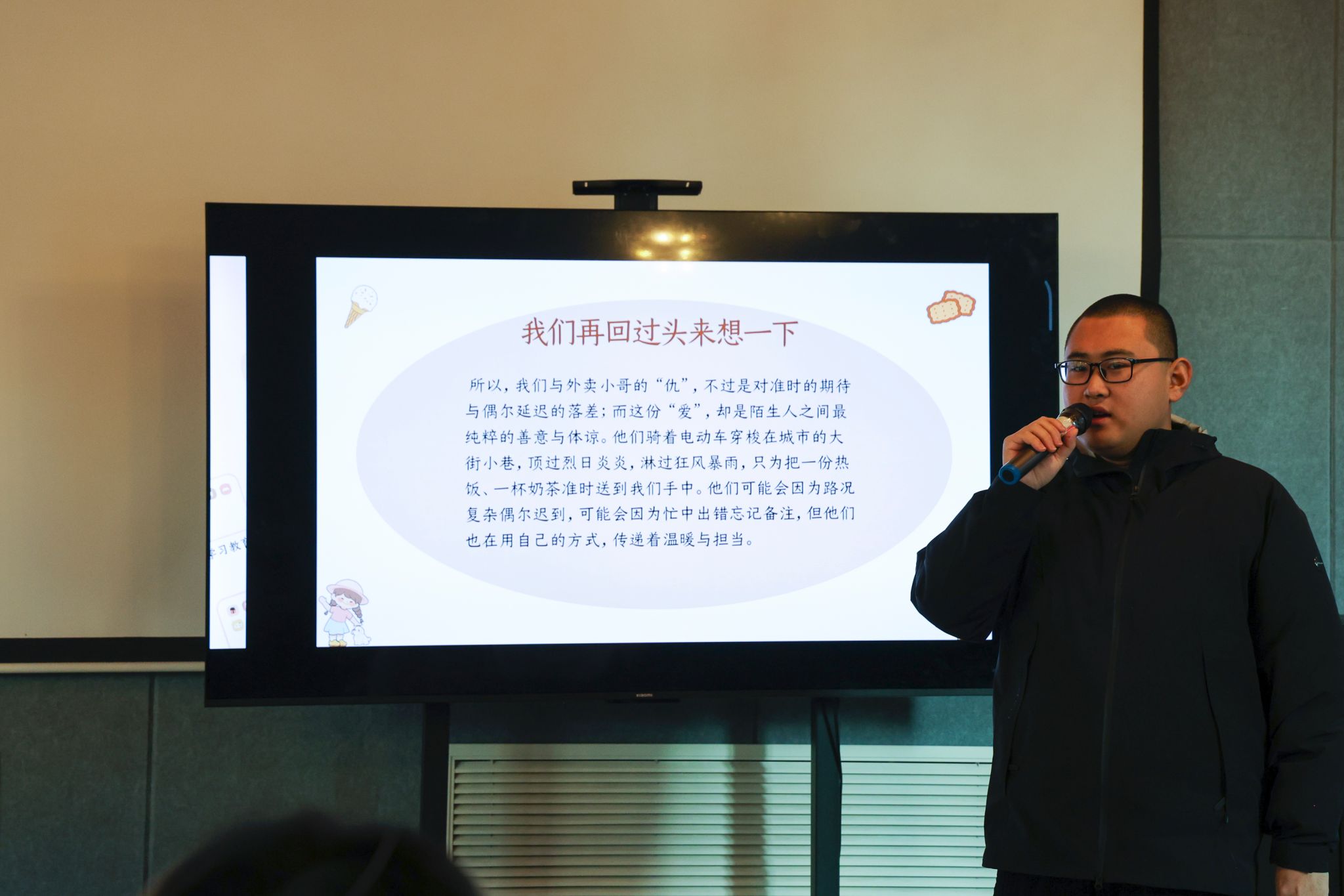 有人曾因超时订单满心焦灼,却在见面时被小哥的歉意与奔波模样软化;有人遇过突降暴雨时,小哥冒雨送达仍护好餐食的细心;也有忘带钥匙、急需帮忙时,外卖小哥伸出援手的意外温暖。演讲者将以幽默鲜活的口吻,细数与外卖小哥的点滴过往,既有小摩擦里的啼笑皆非,更有平凡相处中的善意微光,借真实经历勾勒市井温情,让听众在共鸣中感知日常里的小温暖,感受平凡陌生人之间的柔软联结,传递生活中的美好善意。