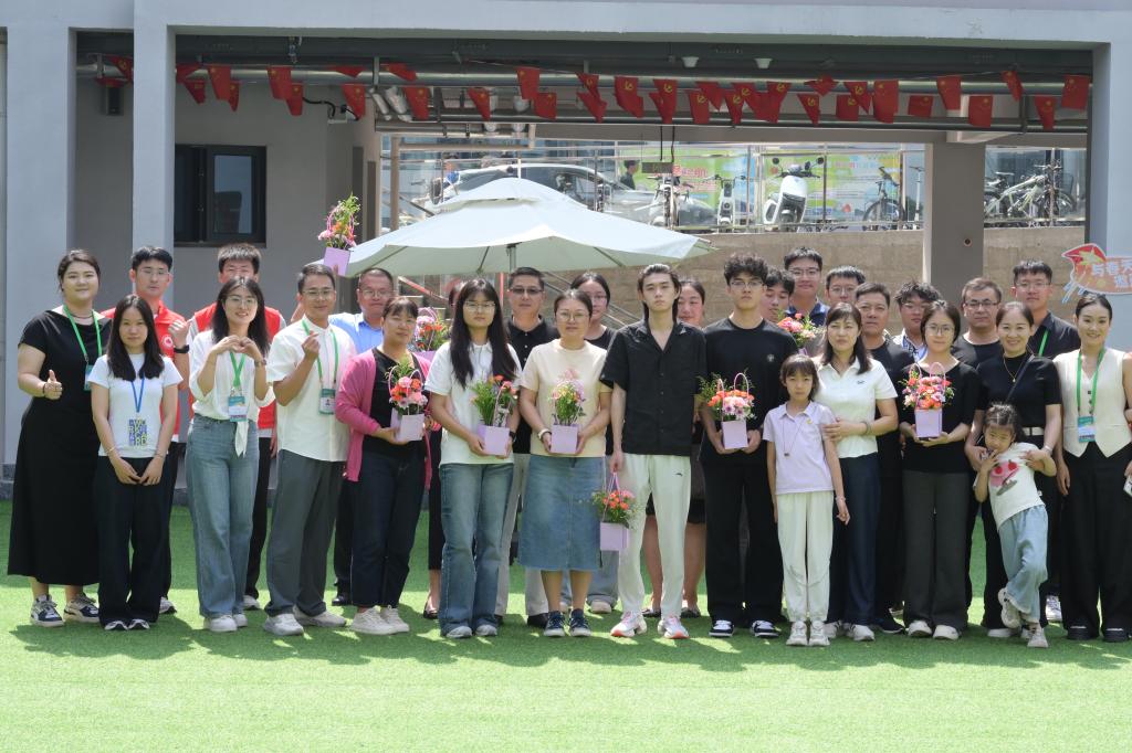 家长们一手捧着刚刚完成的花艺作品,一手轻轻搭在孩子的肩上;同学们则笑得眼睛弯成了月牙,有些调皮地歪着头,靠向父母的臂弯。镜头之下,是比花更明亮的笑容,是父母眼角悄悄泛出的泪光,是少年初入大学的憧憬与坚定。