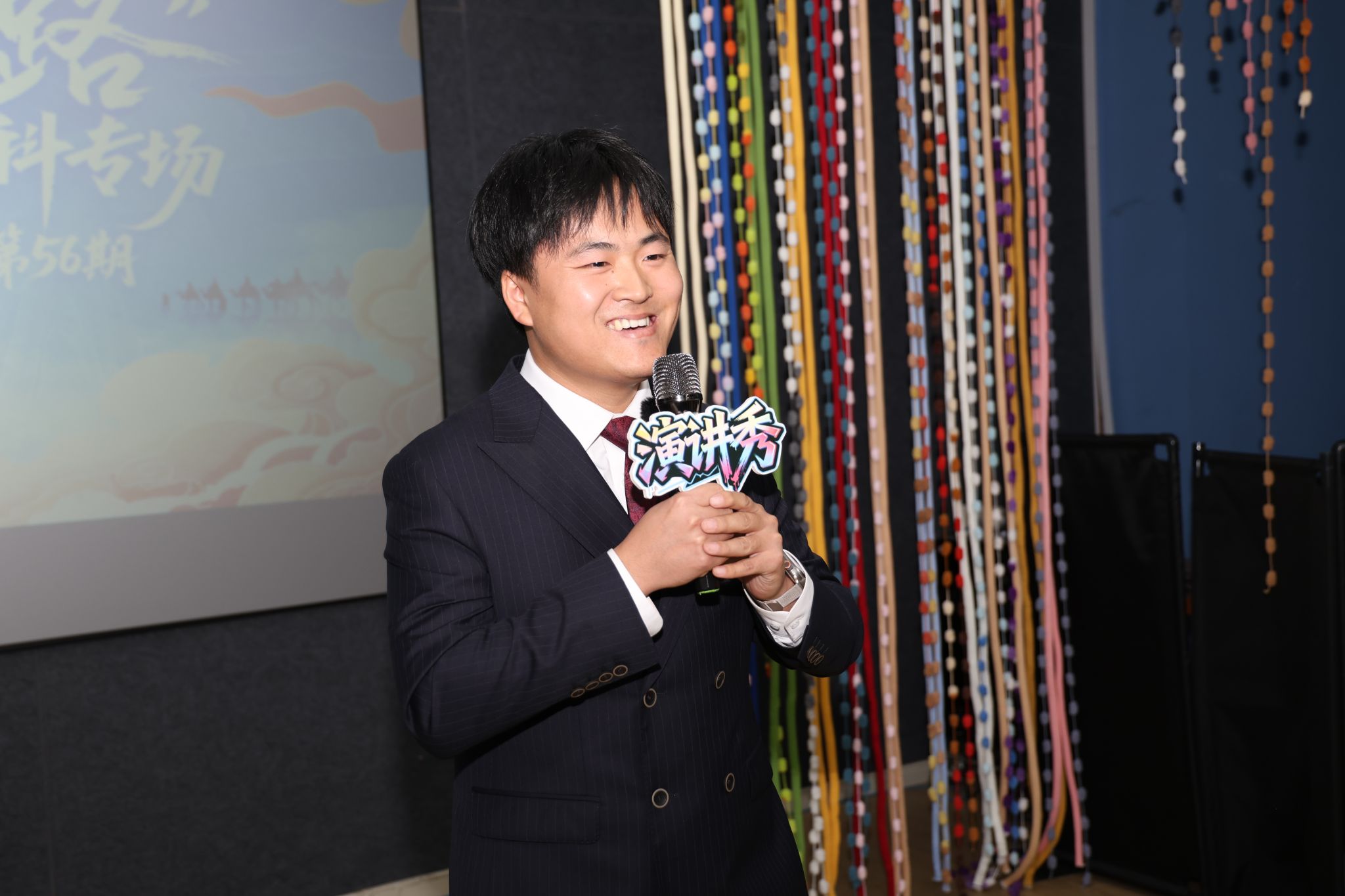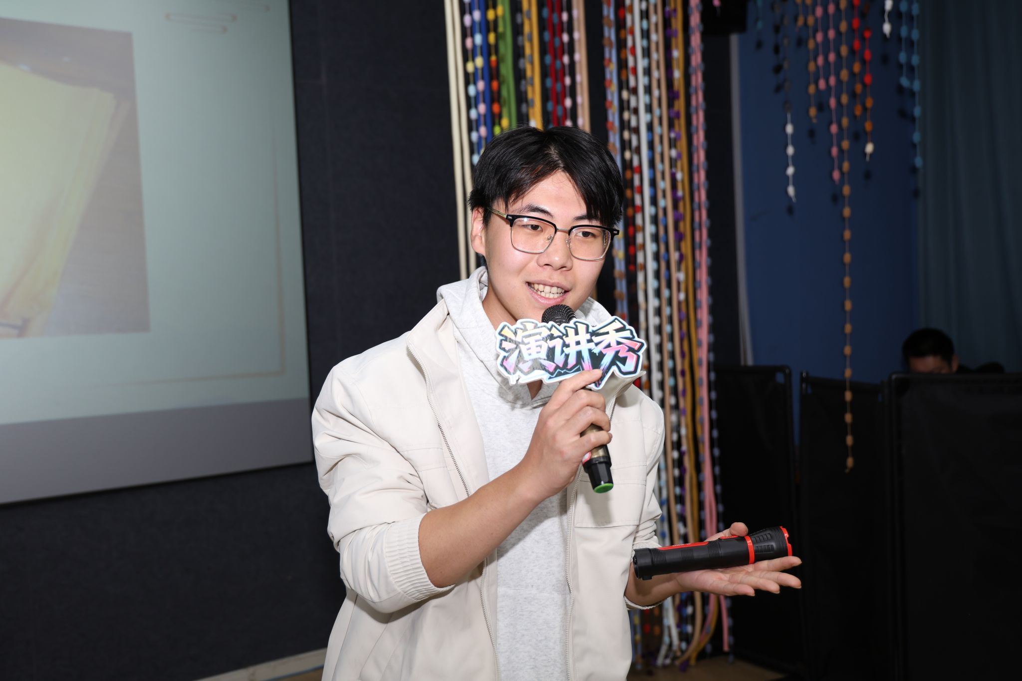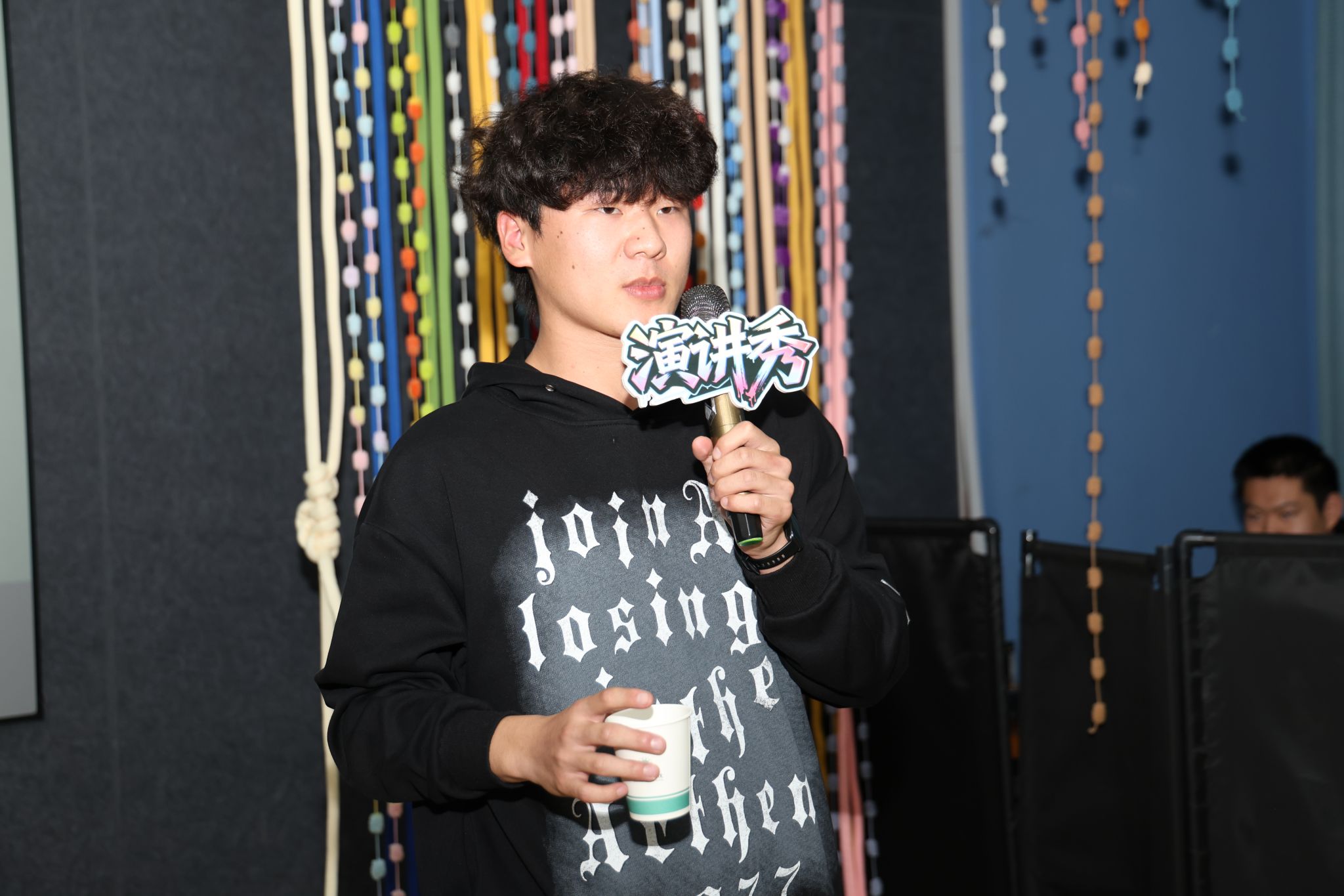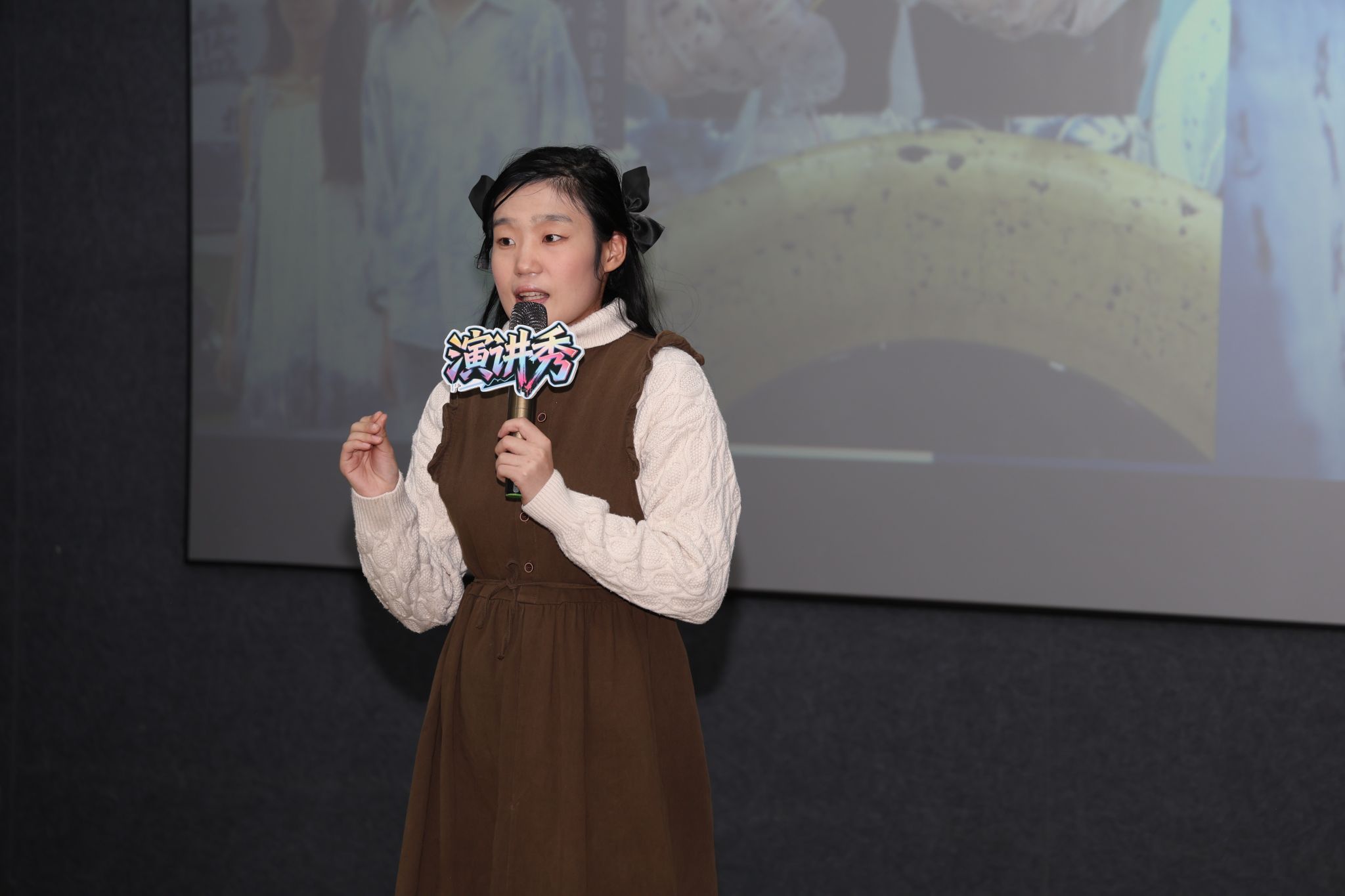 来自大数据学院/育英书院的安逸平同学以轻松幽默的脱口秀形式,分享了他眼中的中国式教育。从统一的校服要求到严格的行为规范,他用生动的校园趣事引发全场阵阵笑声。当他谈到在泰科的学习生活时,他用“友好的为所欲为”来形容这所大学赋予学生的成长氛围。“我们学校宣传‘双一流之外的首选大学’,倡导‘放肆的野蛮成长’,”他笑着说道,“在这个包容的环境中,我们既能尊重规则,又能勇敢表达——这大概就是教育最美的样子。”他真诚的表示,正是这些看似严格的要求,保护了学生的自尊心,让每个人都能在相对公平的环境中成长。中国教育的可贵之处在于让所有人都获得了接受教育的机会,而他能够自信地站在这个演讲秀舞台上演讲,也正是教育赋予的底气。