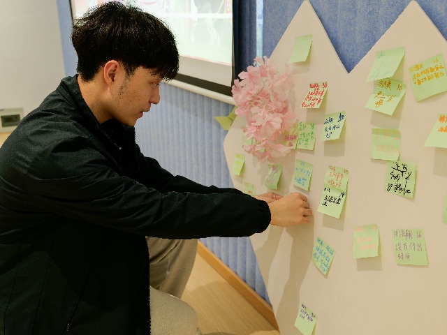 针对本月工作中存在的不足与遗憾,大会特别设置了一个反思环节。每位部长为自己的3月表现打分,并写下原因。随后大家将便利贴贴在舞台中央的KT板上,三位学长随机抽取并点评。一张打着66.66分的便利贴引起了王鲁豪学长的注意,上面写着:“剪纸活动过程中,因为音响的问题,我们的舞龙表演并未像彩排一样完美呈现,觉得很遗憾,也很对不起队员们的辛苦排练”,王鲁豪学长取下这张便利贴,真诚地说道:“虽然你没有写名字,但我也想把这句话送给你,也送给大家:遗憾和不完美不可怕,它是来提醒我们,下一次可以更好。当然,这些遗憾,都会成为你接下来人生里最有温度的底气!”
