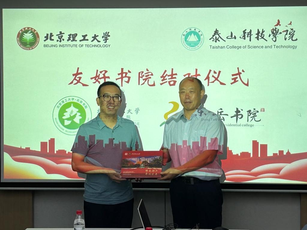 日前,泰山科技学院东岳书院与北京理工大学北京书院结为友好书院。我校常务副校长谢承红一行师生赴北京理工大学考察交流并参加两校书院工作座谈交流。