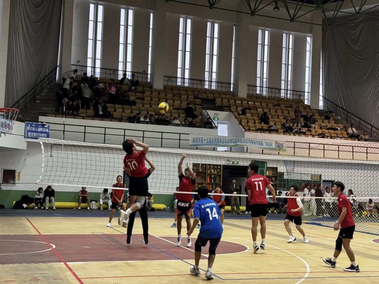 10月12日至27日,泰安市第十五届全民健身运动会暨首届“体总杯”高校大学生排球比赛成功举办。经过激烈角逐,泰山科技学院代表队表现卓越,载誉而归:校女子排球队凭借稳定发挥与出色战术执行力,勇夺桂冠;校男子排球队展现顽强拼搏精神,荣获比赛亚军。