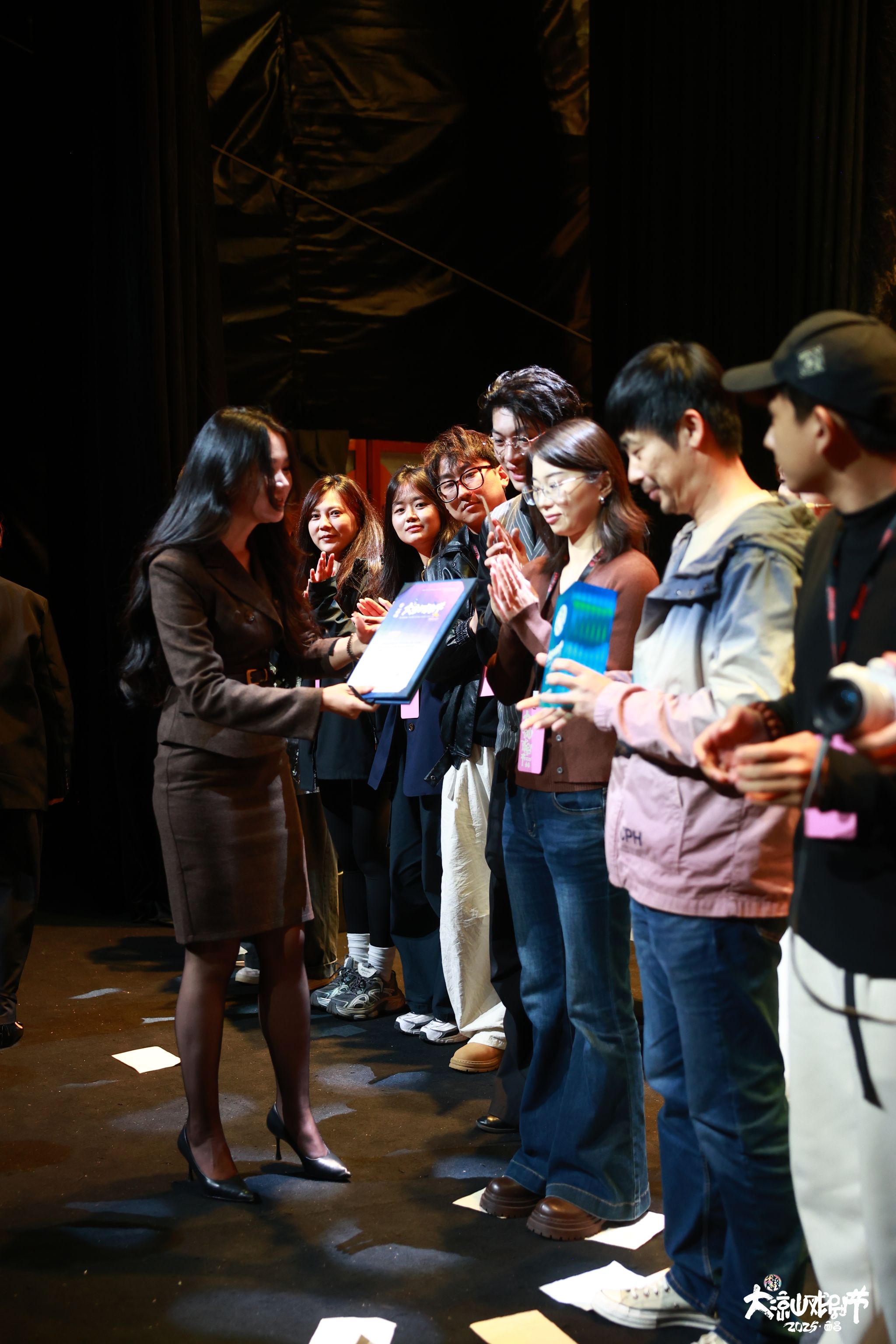 演出圆满落幕之际,锂洋主任代表《笔尖·心跳》剧组,满怀诚挚地向大凉山国际戏剧节组委会以及所有到场观众致以最深切的谢意。他借邛海天空中的云这一充满诗意与希望的意象,抒发感慨:只要有云,天空就会美丽;只要有戏,世界就更美好。大凉山戏剧节组委会代表赵建雪上台,将象征荣誉的名牌与证书授予《笔尖·心跳》剧组,现场掌声雷动,将这份荣耀与喜悦推向高潮。