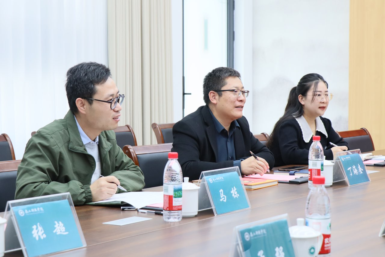 考察结束后,双方在明心书院112会议室举行专题座谈会。丁海奎就大数据与智能工程等相关学科的建设情况作了系统汇报,重点从三个方面介绍了我校的发展成果与未来规划:一是学科建设进展,涵盖特色课程体系建设、人才培养模式创新及代表性成果;二是产学研协同育人基础,介绍了现有合作平台的运行机制;三是明确了当前学科发展的核心需求与合作意向,全面展示了我校学科布局与育人重点。汇报中特别指出,学校在“四位一体双院制”育人模式实践下,以学生充分发展为中心,构建了专业教育+通识教育+商科教育+完满教育的课程体系,在学院+书院双轨制的运行下给予学生更多选择与可能。