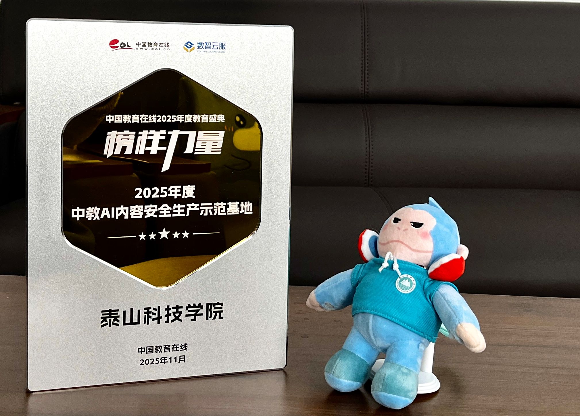 近日,中国教育在线“榜样力量·2025年度教育盛典”优秀案例名单正式揭晓,泰山科技学院凭借在新媒体创新传播、数字化品牌建设中的突出表现,荣获“中教AI内容安全生产示范基地”的称号。