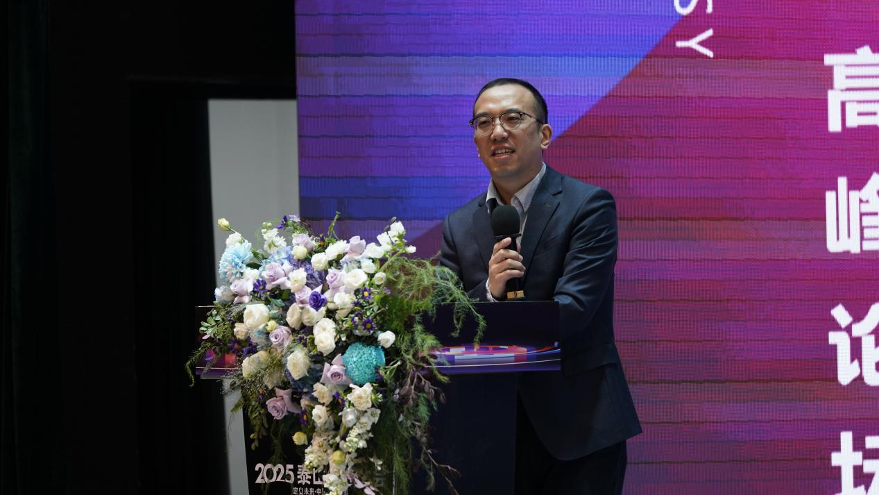 谢承红致开幕辞,他向各位来宾的到来表示最热烈的欢迎。他指出,有着433年古育英书院历史文脉的泰山科技学院,因为科幻界各位来宾的到来,让这片稍显古老但又始终有着年轻人的土地,向着未来而新生。学校自2021年成立蓬莱科幻学院以来,为全校学生开设了《科幻与想象力》通识必修课程及一系列选修课、项目实践、赛事互动,在泰山脚下开启了科幻教育的伟大远征。学校已连续四次举办高水平全国性科幻大会,以校园和学生成长为根基,助力中国科幻故事的生长与传播。