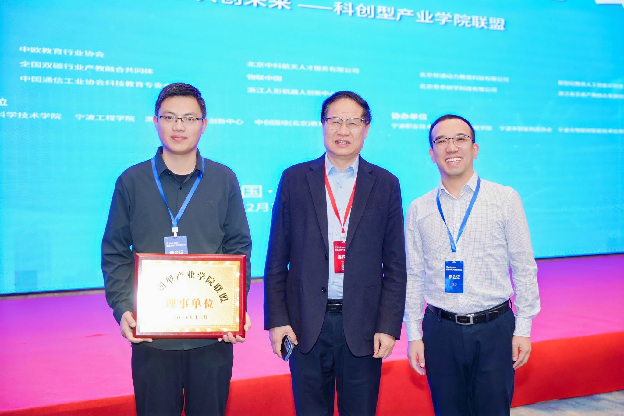 12月18日至19日,FICF2025未来产业学院论坛在宁波举行,国内相关高校、企业代表等400余人参会。我校党委书记李文喜、常务副校长谢承红、智能工程学院院长张涛然应邀出席。