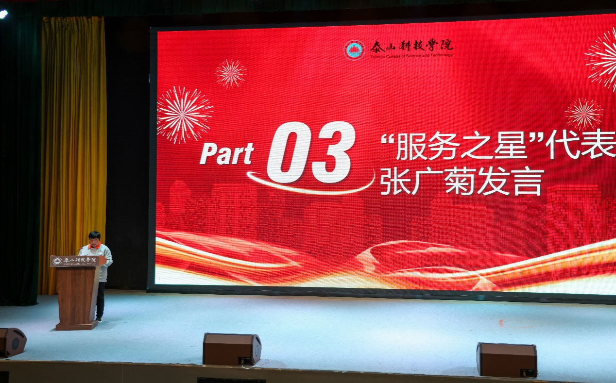 会上,“服务之星”代表张广菊分享了其服务师生的工作经验与心得体会。