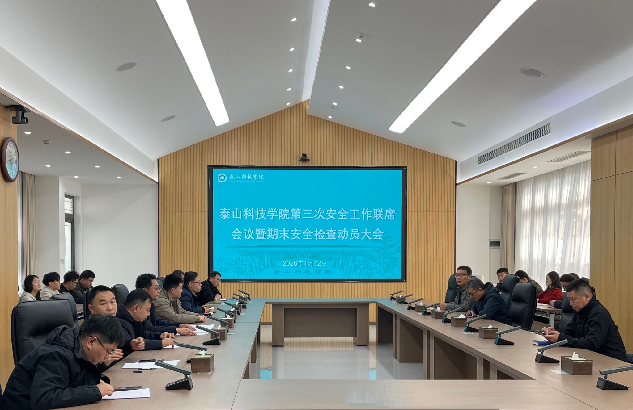 1月12日,泰山科技学院召开第三次安全工作联席会议暨期末安全检查部署会,全面启动期末校园安全专项检查工作,旨在进一步压实安全责任,排查整治隐患,确保期末及假期期间校园安全稳定。学校有关领导、安全管理委员会有关负责人、各职能部门与学院负责人、期末安全检查组成员参会。
