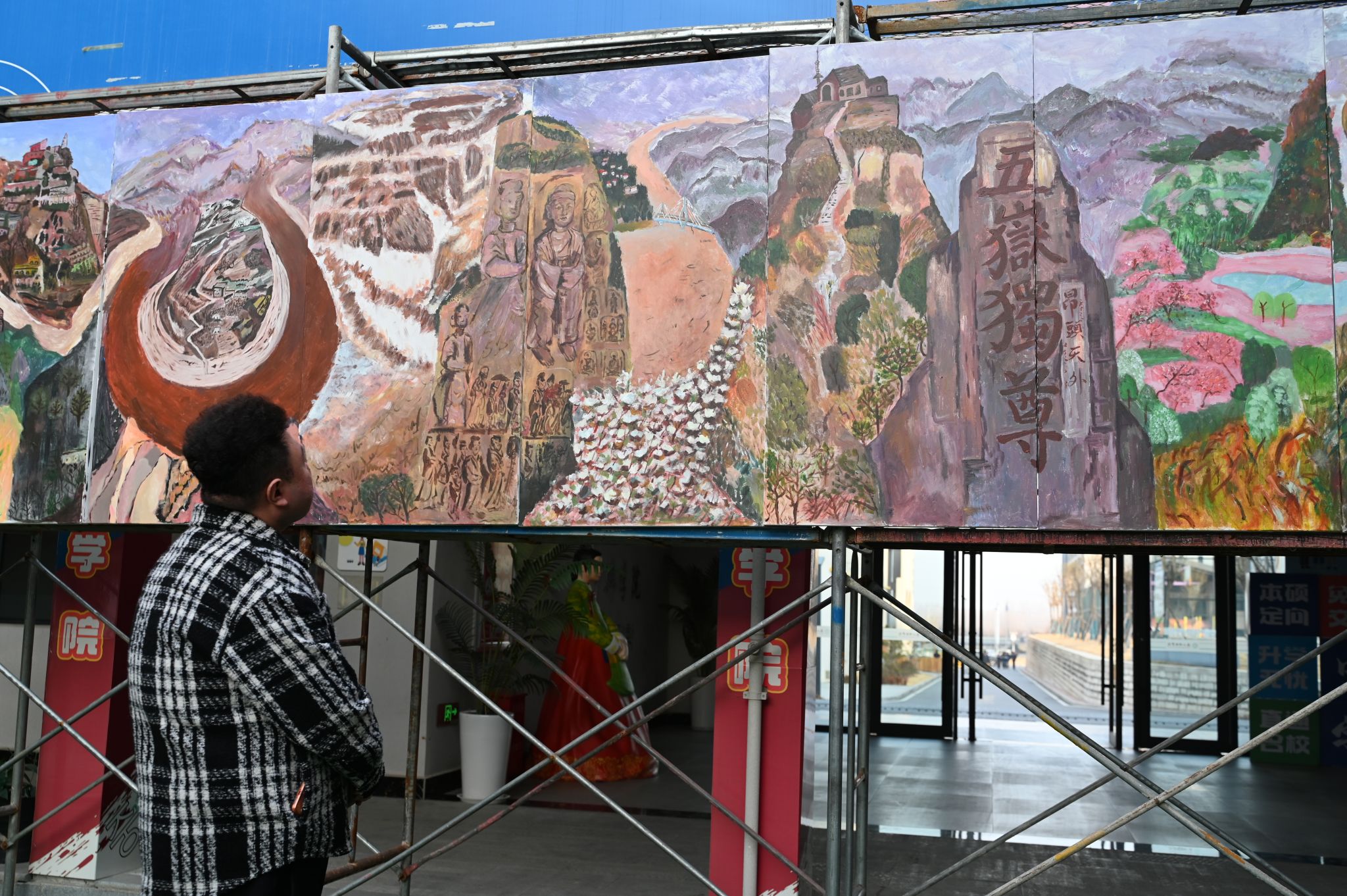此外,“满载而归”展区陈列了多幅由零基础学生创作的油画、国画及书法作品。学生在《油画鉴赏与实践》《中国书画艺术鉴赏与创意表达》等课程中,通过系统学习与反复实践,以画笔和笔墨表达对校园风光、传统文化和艺术之美的理解与热爱。作品虽在技法上尚显稚嫩,却洋溢着真挚的情感与鲜明的个性。