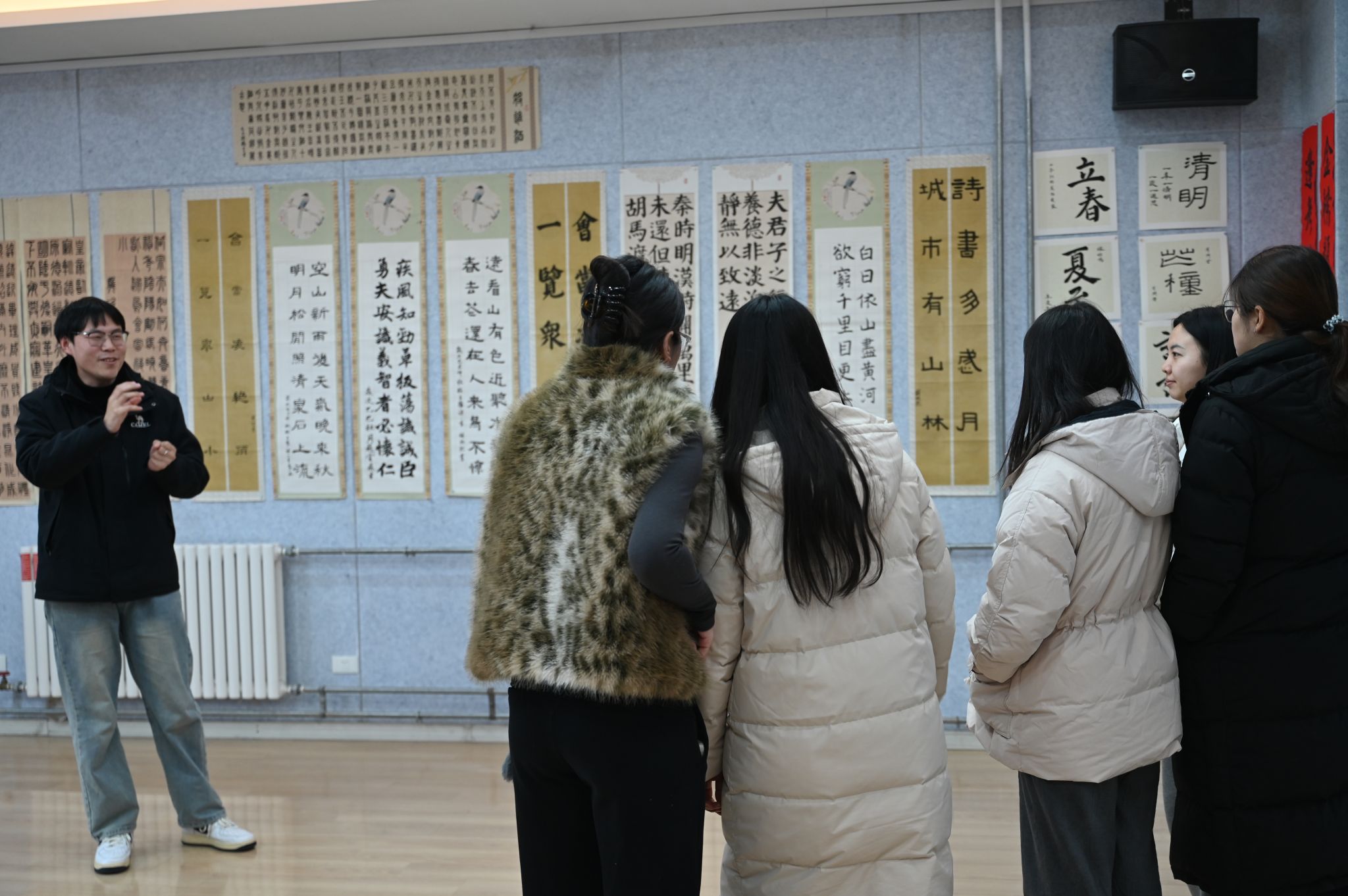 展览期间,学校师生齐聚新言庭院,共同观摩、品鉴来自不同课程领域的教学成果。据介绍,泰山科技学院近年来持续深化博雅教育改革,以远景学院为试点,着力构建跨学科教学共同体。在各类博雅教育课堂中,“跨学科双师课堂”成为一种创新模式,不同学科教师协同授课,引导学生贯通科学、艺术与人文领域,在思维碰撞中深化对现实世界的理解。