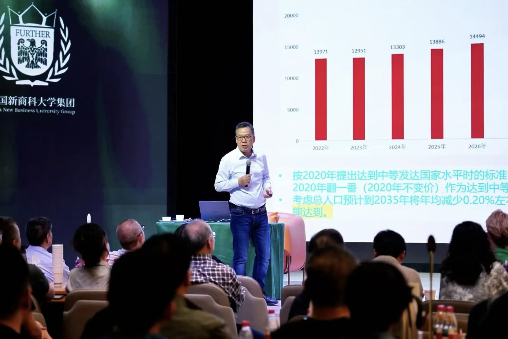 首场讲座特邀中国人民大学哲学院教授温海明,作题为《周易与新商科》的专题分享。温教授从《周易》的本源哲学出发,系统阐释其“阴阳转化”“天人合一”的思维体系,并将其与商业底层逻辑、新旧商科演进及企业治理实践深度结合。他提出,《周易》所蕴含的“变易”“协调”“长远”思维,为应对复杂商业环境、推动跨界协作、实现稳健发展提供了重要方法论指导。讲座特别结合2024年至2043年的“九紫离火运”趋势,分析了文化、科技等领域的机遇与风险,强调在变革中需保持战略定力,通过修身正念与协同创新把握发展主动。