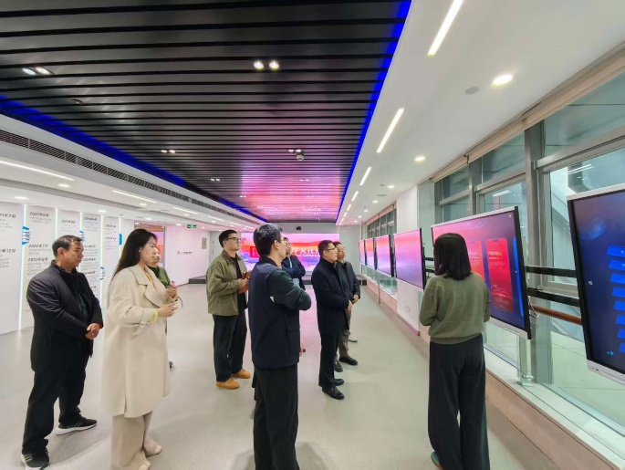 座谈交流前,泰山科技学院一行在山东数字文化集团相关负责人陪同下,参观了集团数智展厅,并观看了集团宣传片,全面了解了集团的发展历程、业务布局、核心优势以及在文化数字化领域的创新成果,直观感受了集团在推进文化与科技深度融合方面的实践与探索。