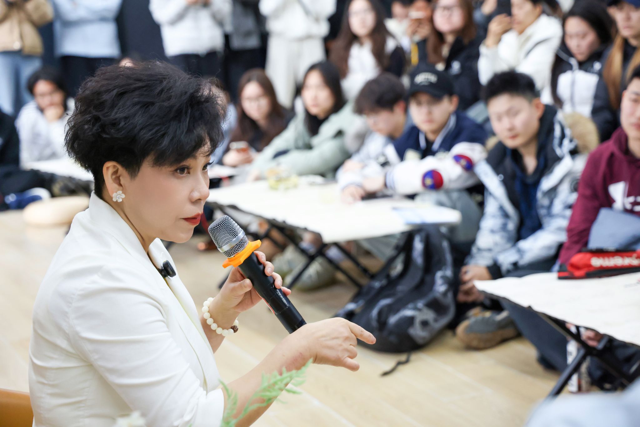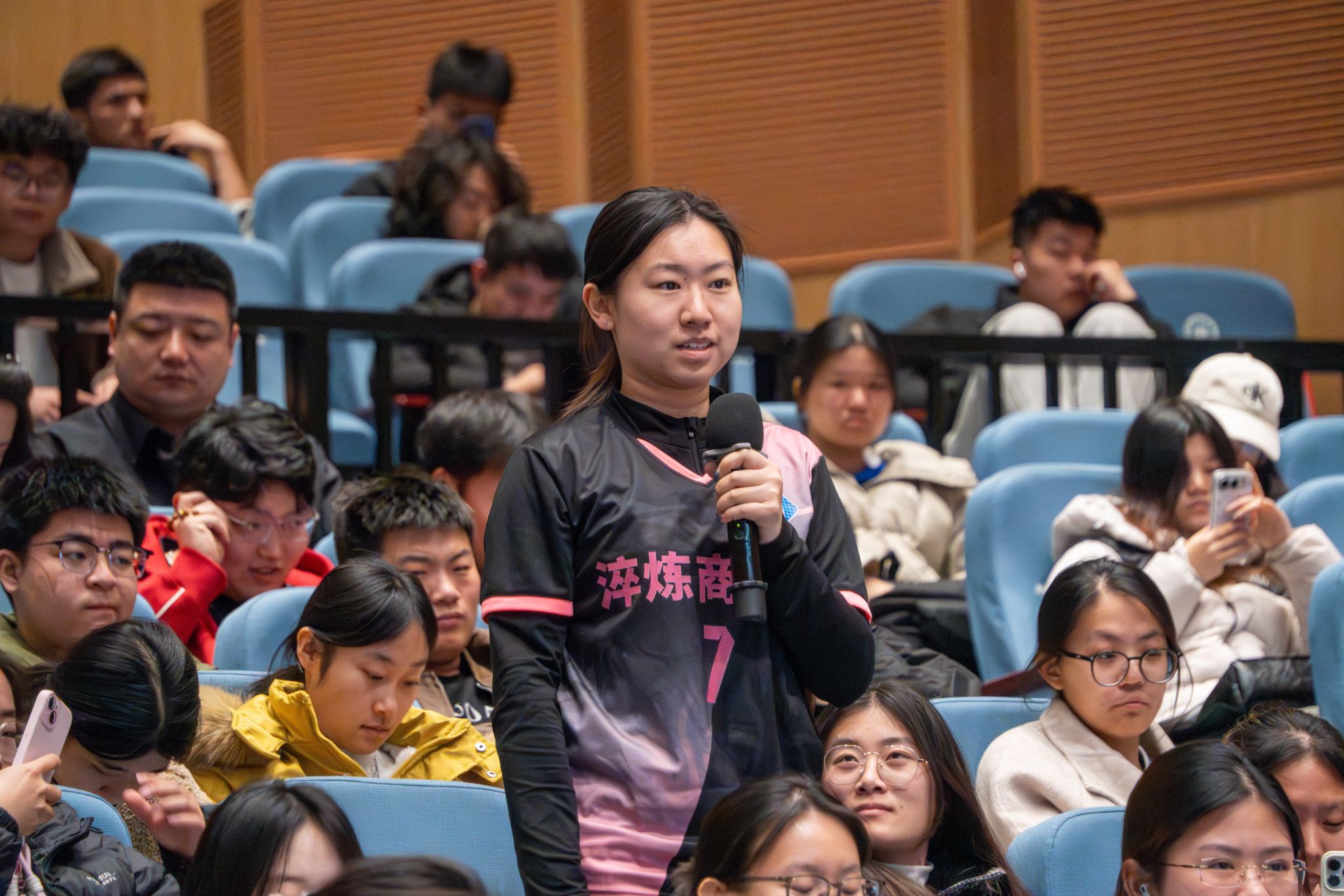 针对学生关于专业选择、就业迷茫的提问,她建议将宏大目标分解为具体过程,像打磨每一记球一样,专注地答好每一道题、上好每一堂课。“不要去想你赢下比赛会怎样,输了会怎样。专注在当下,你才能把握比赛。”她将赛场上的“咬”与“顶”化为人生路上的坚持与担当,鼓励年轻人坦然面对内心的恐惧,“当你直面它的时候,坎你已经迈过去了”。