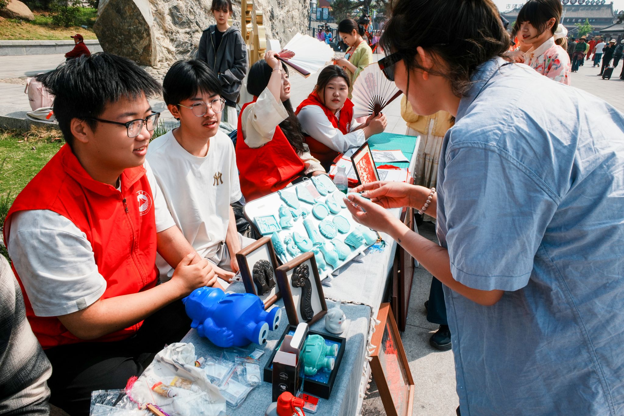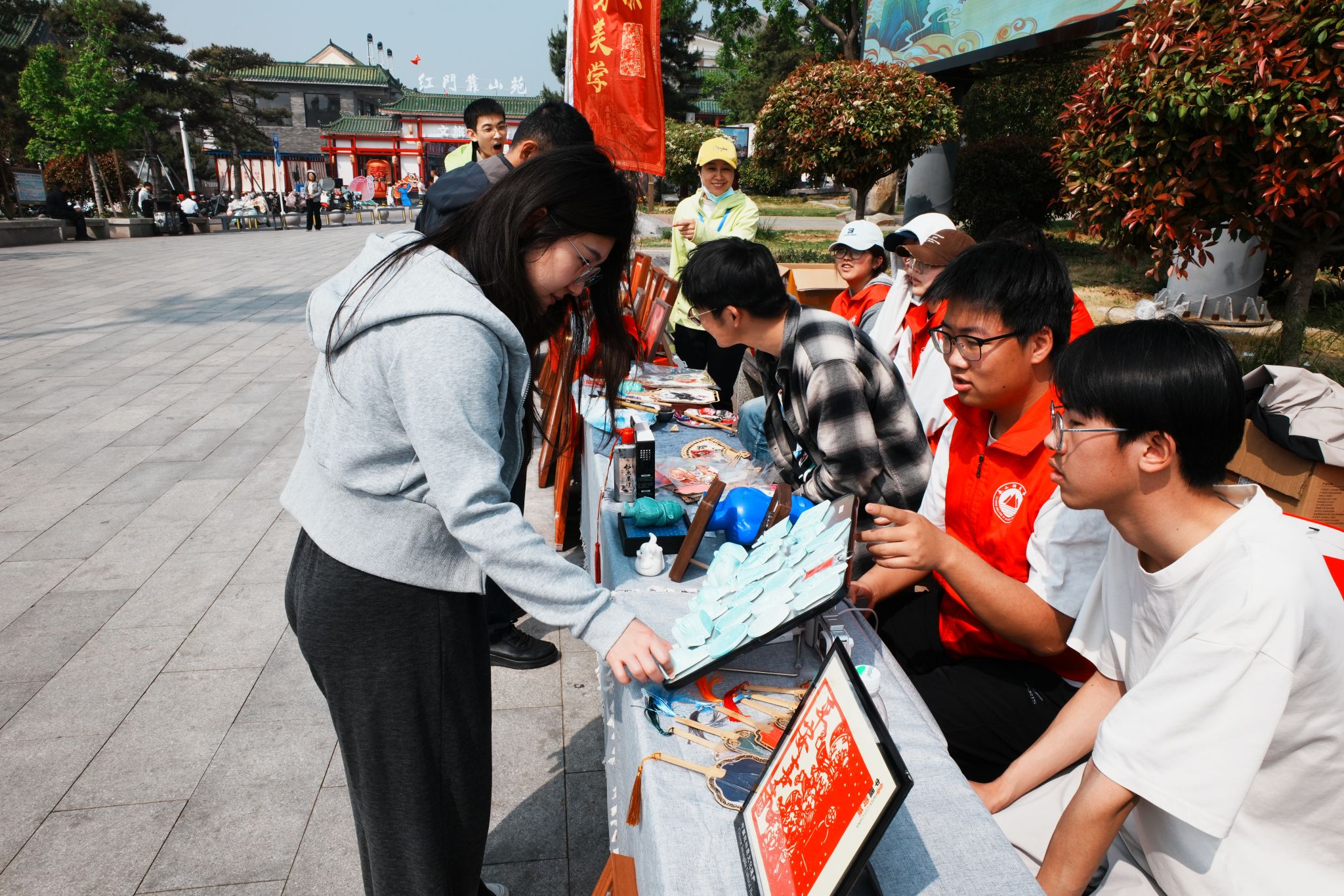智能工程学院车佳琤同学在展示拓片技艺后感慨:“能在泰山民俗活动现场展示、传承拓片这门非遗手艺,我觉得很有意义。当看到游客们驻足观赏、认真聆听传拓技艺的历史,并亲手尝试操作时,我真切感受到了泰山传拓技艺的魅力与生命力。这次活动让我走出校园,用指尖技艺传递泰山民俗韵味,也让我更加坚定了传承非遗技艺的决心。”