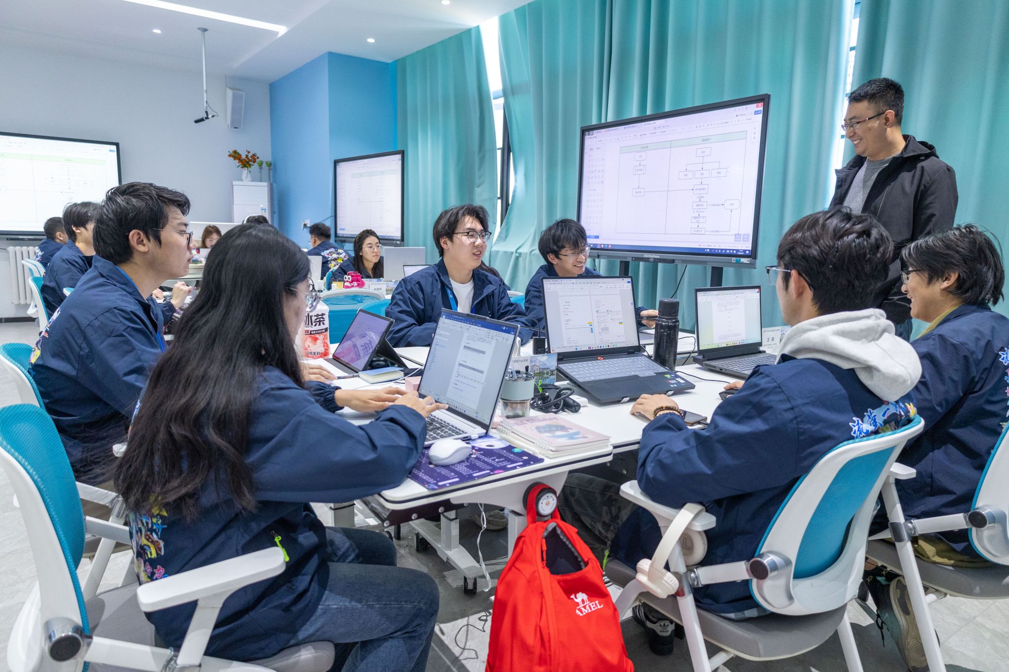 学校打破“学校与企业两张皮”的壁垒,建立双师混编教学团队:一方面邀请企业工程师走进课堂,另一方面组织校内教师深入企业一线挂职锻炼。以鲁普耐特产业学院为例,企业工程师将“纤维材料优化”难题带入课堂,带领不同年级学生组建攻坚小组,从低年级的“方案讨论”到高年级的“实操落地”,学生在解决真实问题中掌握技术、理解产业逻辑。重点建设的双体软件精英产业学院,投入8000万元与企业深度合作,毕业生落实率保持较高水平。