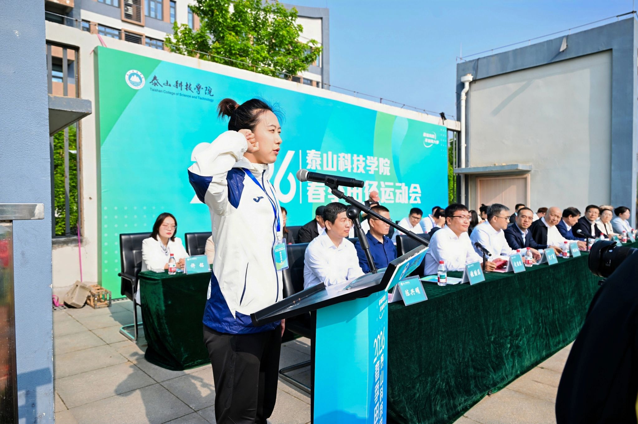 在全场热烈的掌声中,耿献文宣布:泰山科技学院2026年春季田径运动会正式开幕。