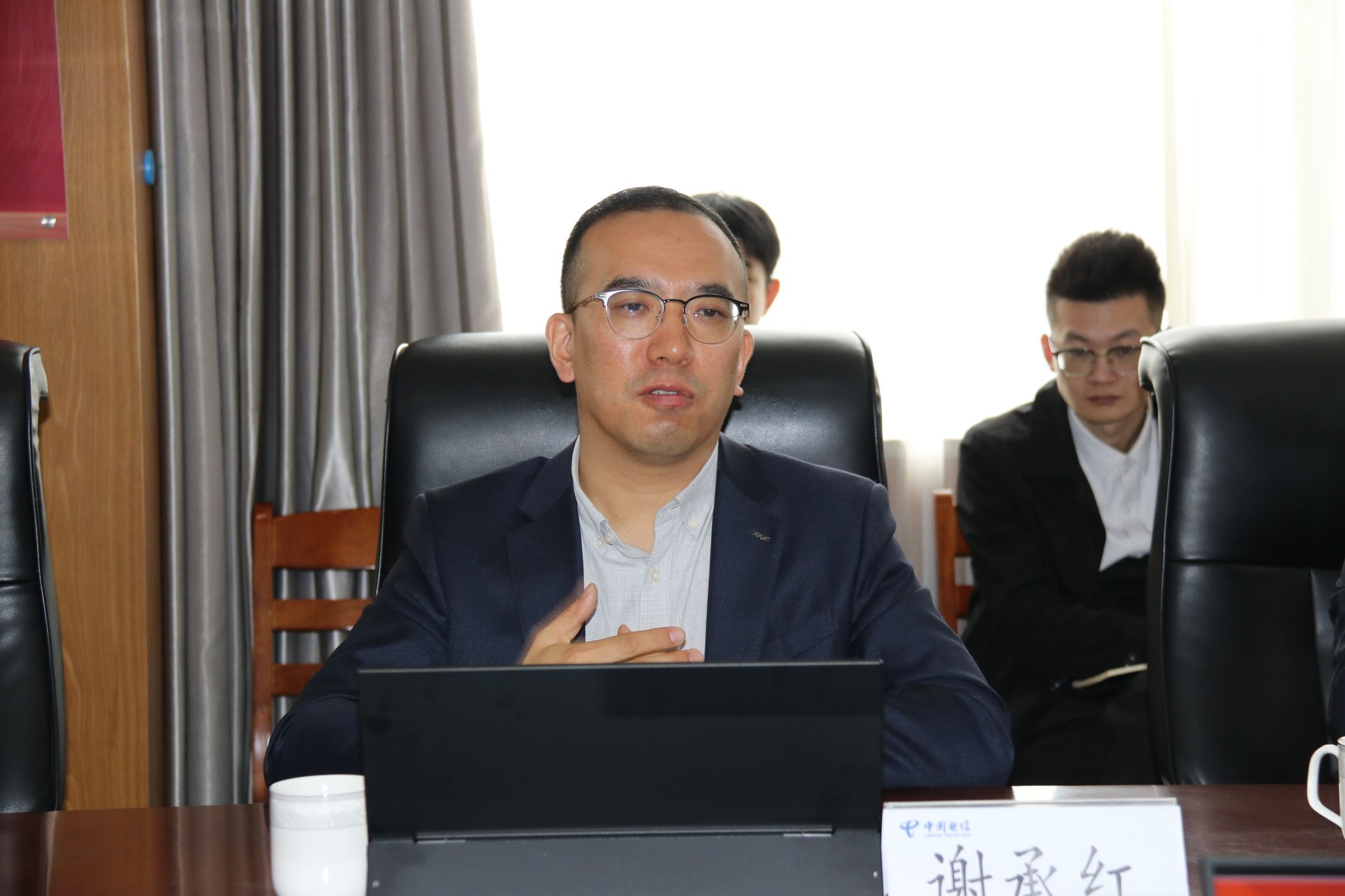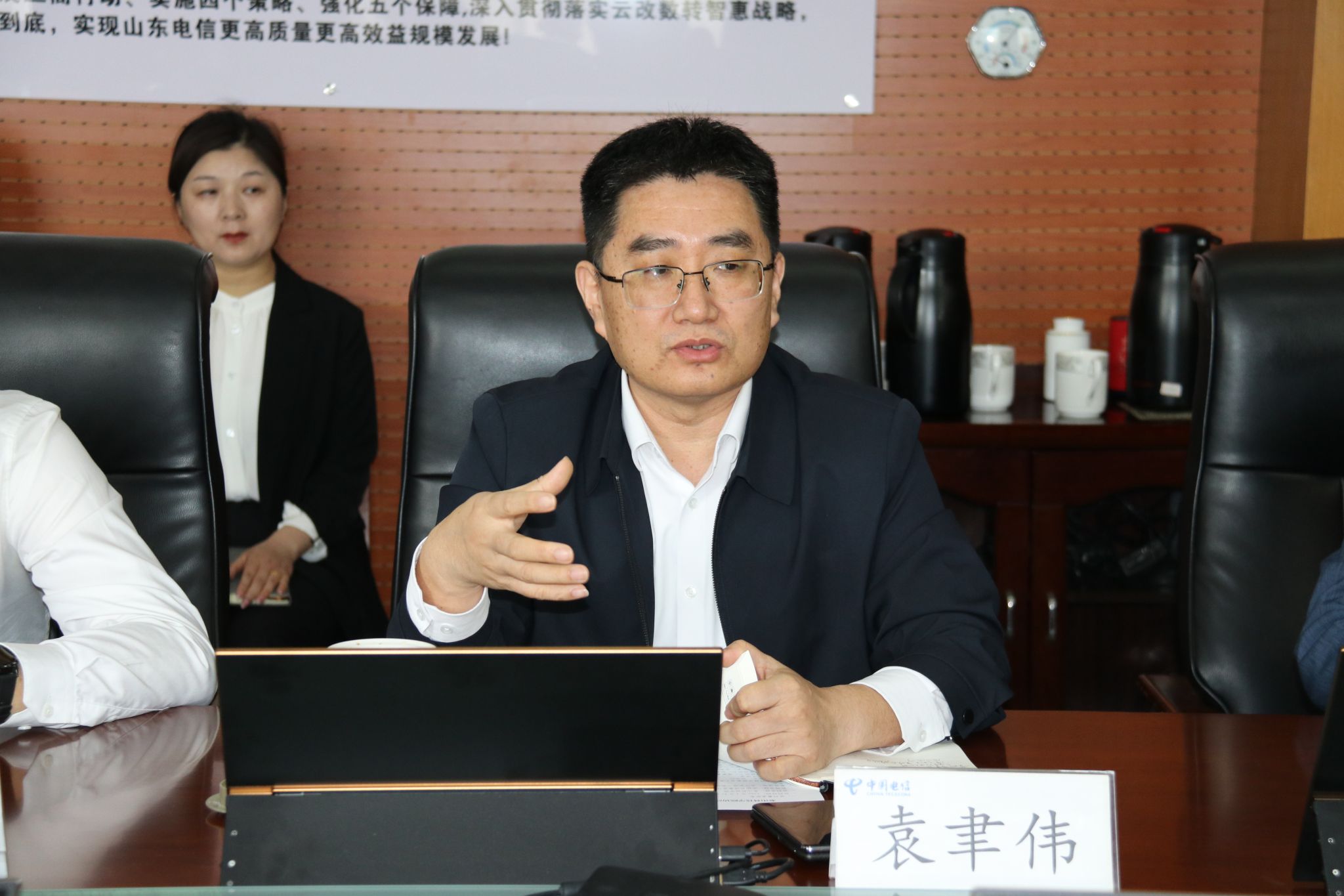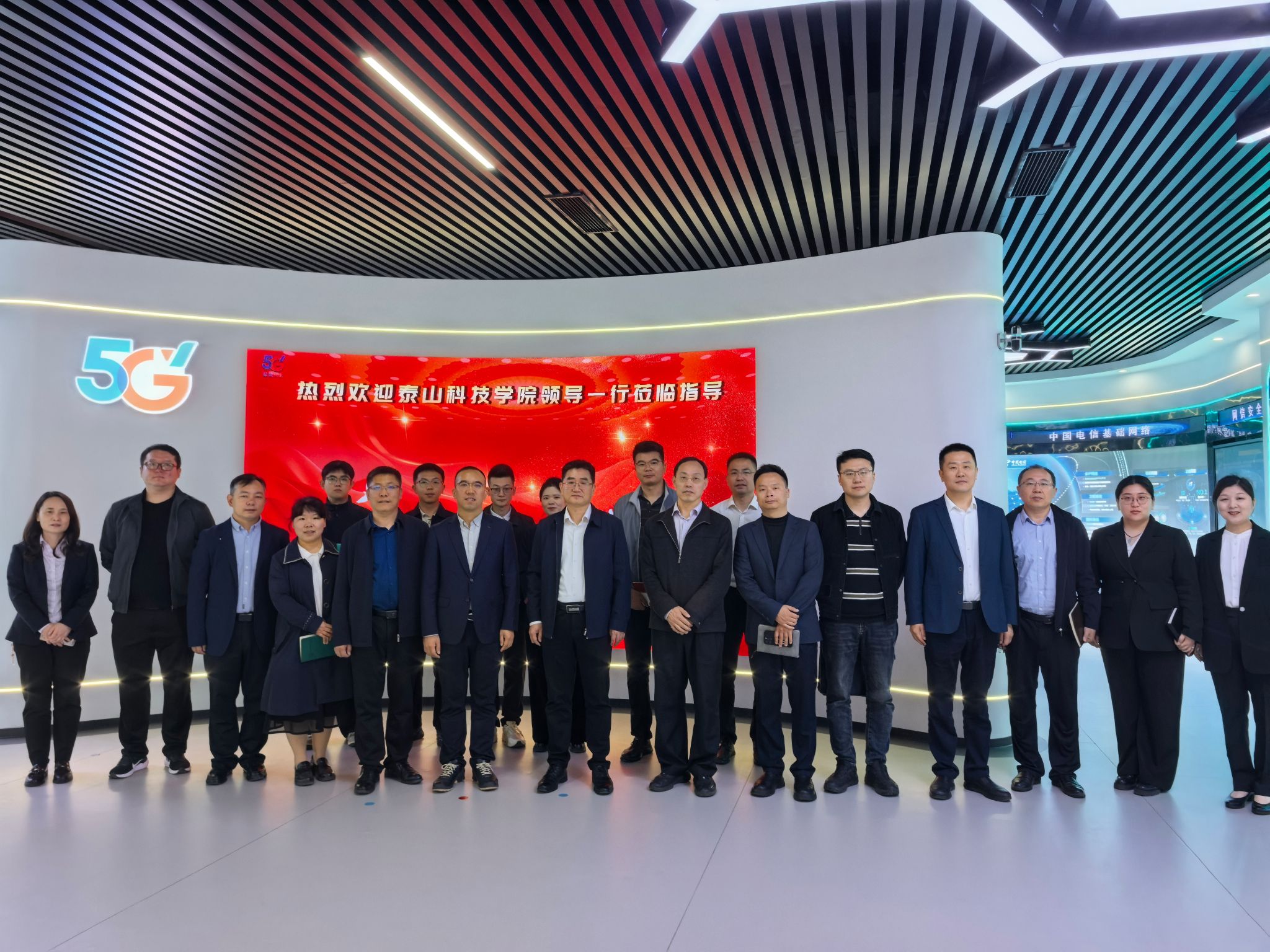 中国电信泰安分公司总经理袁聿伟对泰山科技学院一行表示热烈欢迎,并系统介绍了公司战略转型与科技布局。他表示,中国电信正以“云改数转”为核心,加快打造服务型、科技型、安全型企业,在量子通信、人工智能、低空经济等领域形成了核心技术优势。依托与教育部的战略合作及成熟的产教融合体系,公司可为高校提供实训基地建设、师资培训、科研协同等全链条支持。