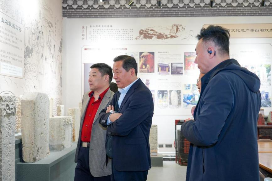 在泰山非遗展览馆、东岳书院调研团详细了解学校“一馆一厅九工坊”的非遗展陈空间格局,以及泰山舞狮、泰山豆腐制作技艺、面塑、剪纸等特色非遗项目的活态传承情况;在育英书院,调研团深入了解明代古育英书院文脉接续工作,对学校挖掘李汝桂教育思想、打造“育英回响”文化品牌的探索给予高度认可。
