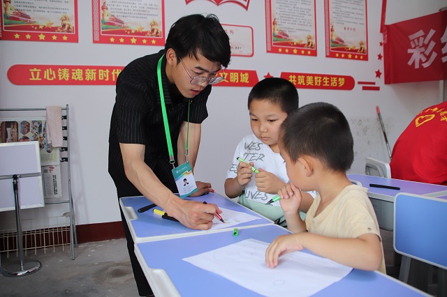 第一站,早上9点,实践团在乡政府的邀请下来到了任家村。当地的老党员向实践团介绍说:“码头镇近几年变化很快,响应国家的号召,在大力宣传生态发展保护当地黄河生态上下了很大功夫!如今颇见成效。”从当地环境发展变化情况上,实践团了解到当地在黄河生态保护上有专门的服务窗口,其中就包括宣传生态保护工作的文化活动室。在与当地的村委会沟通后召集了一部分小孩子来到文化活动室,当地的志愿者以绘画的方式告诉小孩子们画出自己心目中最美丽的黄河景色是什么样子的,从而启发它们如何通过绘画更好的了解黄河,了解黄河生态保护的重要性及和引导它们树立黄河生态保护意识。