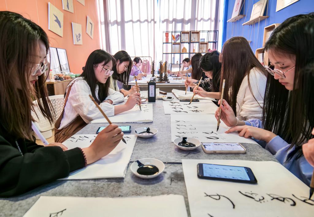 参加者在活动现场一起临摹女书字体,亲身体验女书的乐趣。用女书柔美的外表抒发女性与生俱来的灵性和创造力,从实用性和美观度的方面,让更多现代女性在书法临摹的过程中,体会到女书所传达的精神价值,给我校女生带来民族的自信、性别的自信和文化的自信。