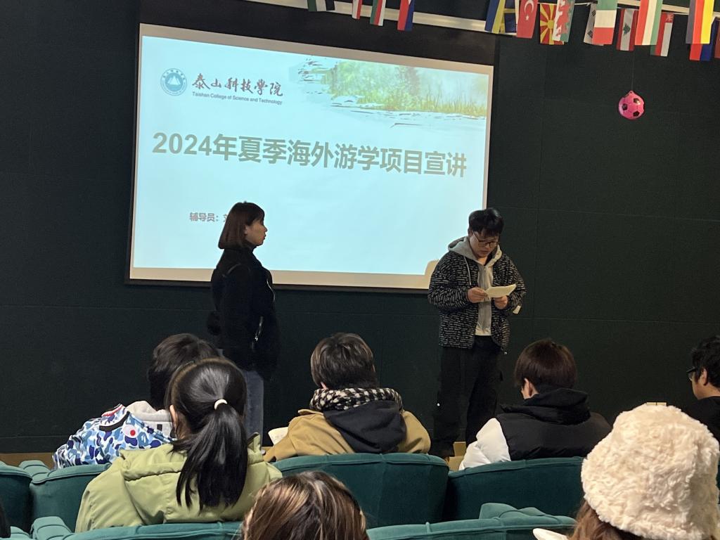 为积极响应学校2024年夏季海外游学计划遴选工作,动员学生们积极报名参加海外游学项目,艺术传媒学院于11月21日开展了《泰山科技学院2024年夏季海外游学计划》遴选宣讲动员会。