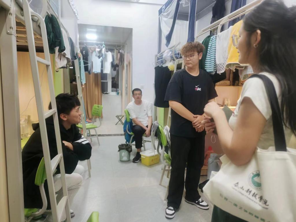 辅导员冯瑞玉同样强调了宿舍安全的重要性,提醒同学们要注意用电安全,遵守宿舍管理规定,共同维护良好的生活环境。同时,也鼓励大家加强体育锻炼,保持良好的身心状态,以更加饱满的热情投入到学习和生活中去。“看到你们朝气蓬勃的样子,我们就很放心。”冯老师在与同学们亲切交谈时表示,学院始终是同学们最坚强的后盾,将一如既往地关心和支持每一位同学的成长,希望同学们能够相互帮助,共同进步,让宿舍成为真正的“温馨小家”。