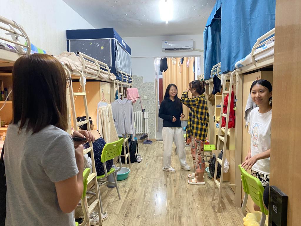 为深入了解同学们的宿舍生活状况,拉近与同学们的距离,辅导员任倩楠多次深入学生宿舍,给同学们带来了温暖与关怀。在宿舍交流期间,辅导员任倩楠对同学们日常生活的关注细致入微,从床铺舒不舒服到习不习惯学校生活都一一询问,她深知这些看似琐碎的事情却实实在在的影响着同学们的宿舍生活体验。同时,她鼓励同学们积极参与宿舍文化建设,大家共同营造一个温馨、和谐、积极向上的宿舍氛围。同学们也热情地回应,分享自己在宿舍里的有趣故事、小烦恼。任倩楠老师耐心地倾听,还给出了许多贴心的建议。此次深入宿舍走访,让同学们感受到了学校的关怀,就像家人的陪伴一样,增强了同学们对学校这个大家庭的归属感。