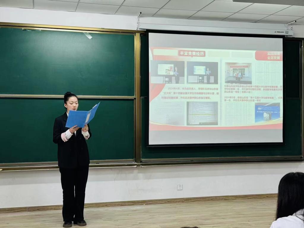 少年应有鸿鹄志,自当争渡展芳华。评选过程中,11位候选人采取PPT汇报和现场答辩的形式,从个人简介、学业成绩、学科竞赛、完满活动等方面进行风采展示,讲述他们在淬炼商学院向光前行的故事,充分展现了我院优秀学生的风采。