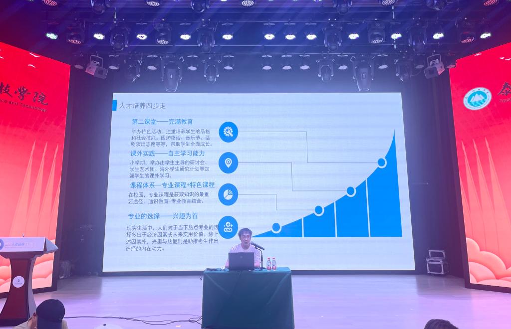系列讲座结束后,老师们根据小组讨论成果,开展我眼中的“双一流之外的首选大学”发展战略学习成果汇报会。王梦真老师以“产教融合·应用引领”为主题展开汇报,她强调动态优化专业结构,精准对接产业需求,通过“专业+产业”模式,实现学以致用的闭环培养,并提出构建“沉浸式实践课堂”和“赛训一体成长平台”,将模拟法庭融入教学,组织跨学科活动,提升学生职业技能与综合素质。朱娜老师以“教研双翼,知行致远”为主题展开汇报,她详细阐述了泰山科技学院的办学定位与特色,即以“信息产业商学院”为定位,构建“四位一体双院制”育人模式,注重学生全面发展。她强调,在我校实行全面素质教育的背景下,教师应秉持“偏向虎山行,仗剑走天涯”的精神,突破传统,探索创新,强调个性化培养与赋能学生成长,助力我校成为一所让学生受益终身、为社会创造价值的大学。