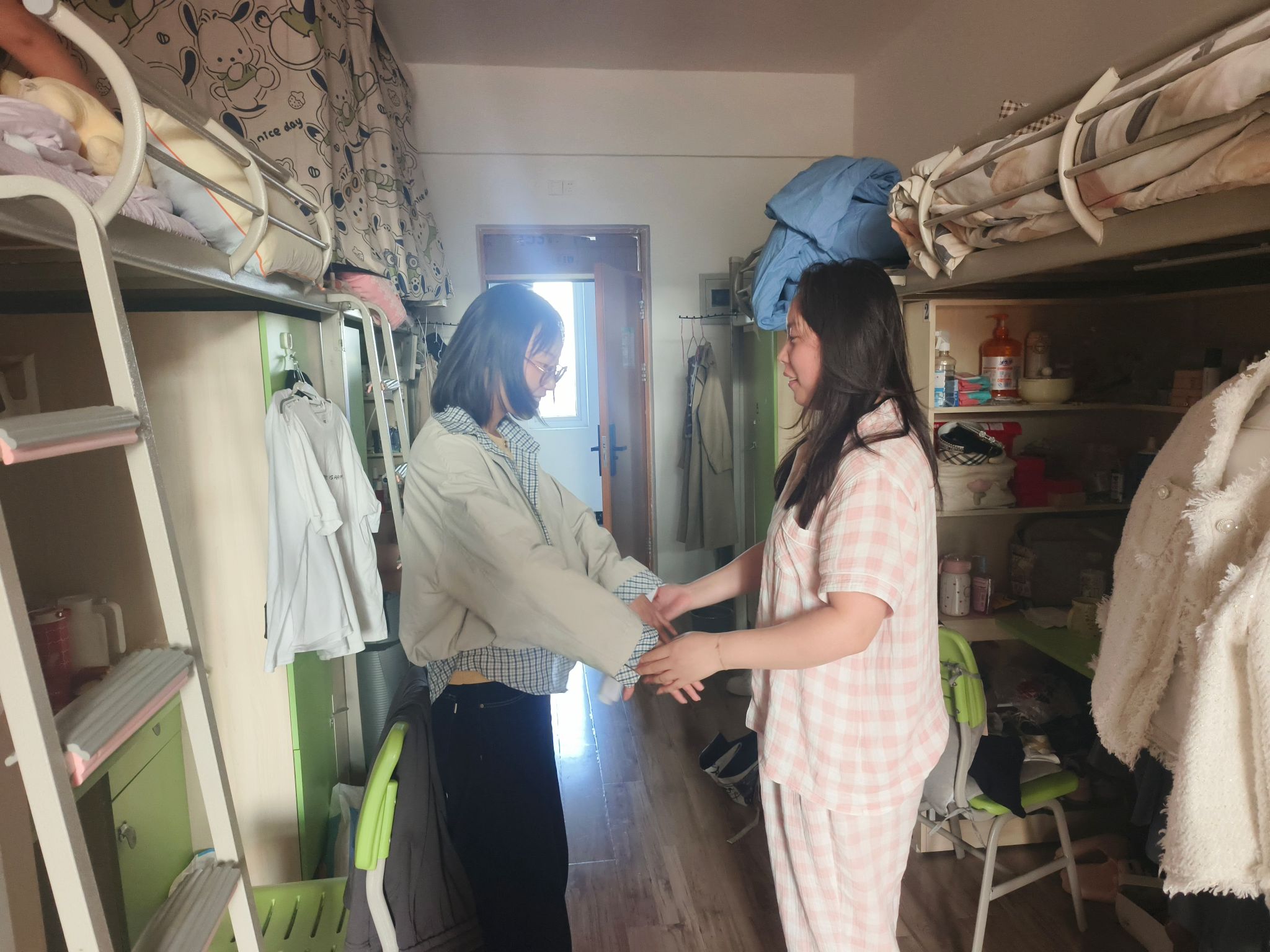 对照“卫生整洁度、物品收纳规范、学风氛围营造”三大核心指标,逐间查验星级宿舍标识维护、文明公约执行情况;