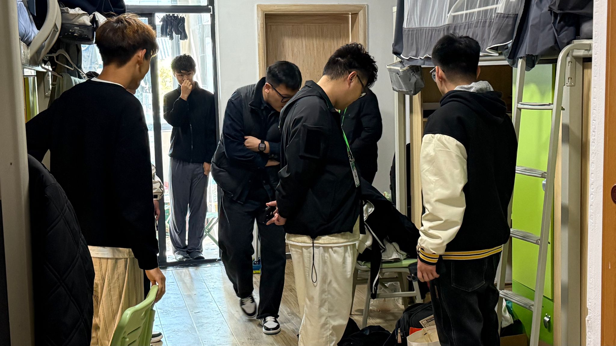 推开一扇扇寝室门,呈现的是一个个鲜活的生活场景。辅导员刘文香、张海园、闫鹏斐一边检查,一边与同学们亲切交流。“这间寝室值得表扬!桌面整洁,地面干净,空气清新,这才是青春该有的样子!”刘文香老师在一间优秀宿舍前驻足,号召大家学习。她强调:“‘小家’的整洁有序,反映的是我们对待生活、对待学业的认真态度。维护好这个共同空间,就是为我们自己的健康与成长投资。”