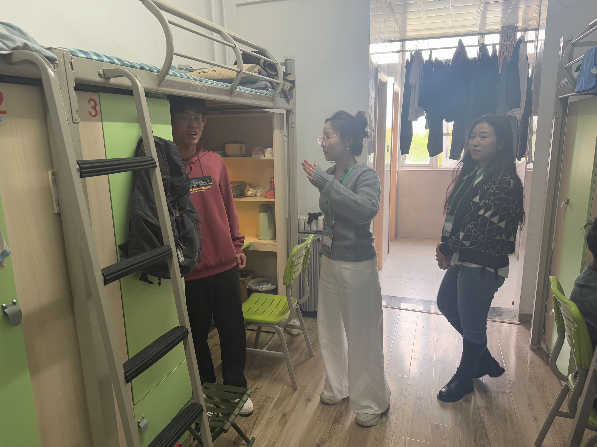 本次宿舍走访活动紧紧围绕“精准对接需求、助力成长成才”这一核心主题展开。在前期准备中,老师们已针对高年级同学的实际情况,明确了走访重点——聚焦学业规划、就业准备、考研备考及学习、生活具体困难等问题,力求解答服务精准到位。走进宿舍,老师们以“朋友”姿态与同学们深入交谈:从日常饮食起居的细节关怀,到课程学习的难点探讨,再到未来发展的方向规划,亲切的话语与耐心的倾听,让宿舍内暖意融融,同学们主动分享着成长中的困惑与期待。