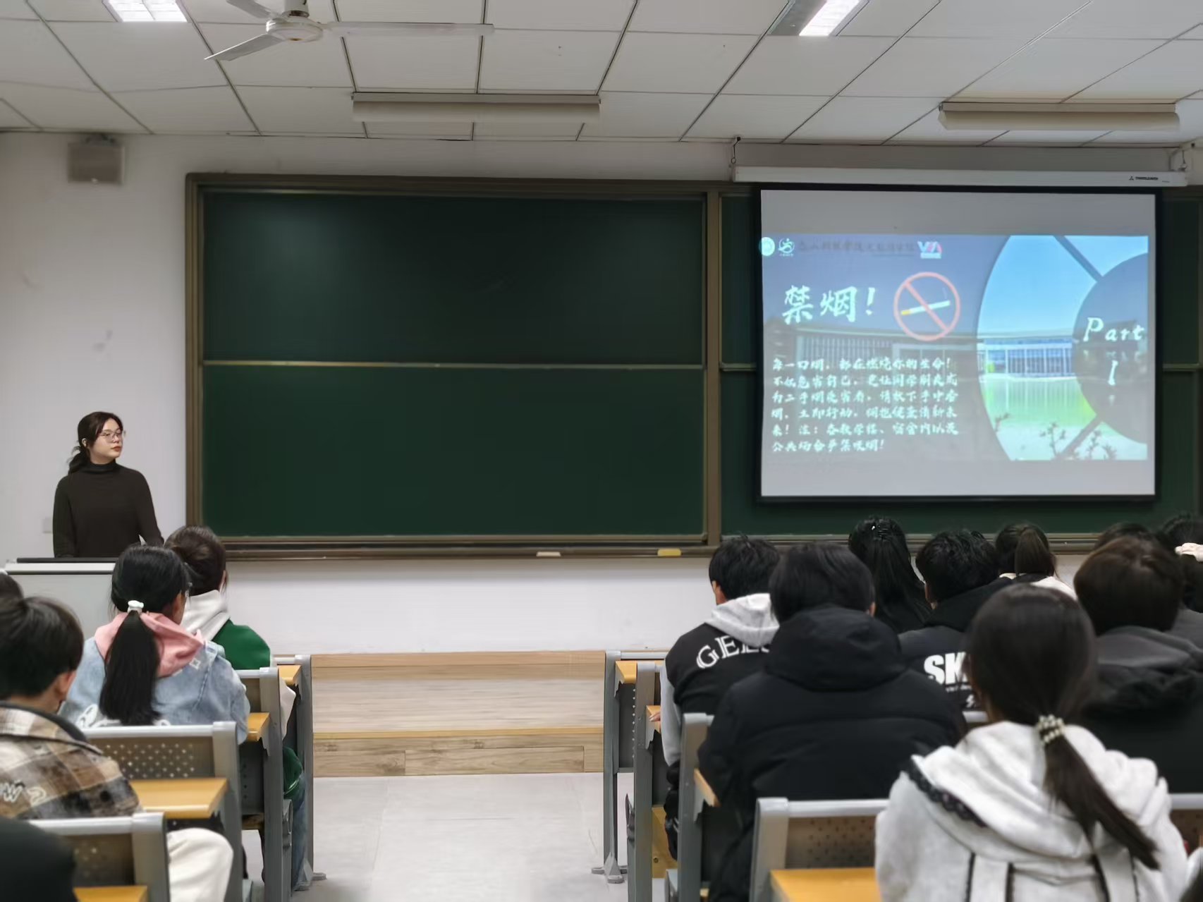 在班会内容设计上,辅导员们各有侧重又相互补充。有的从健康风险入手,深入剖析吸烟与肺癌、口腔癌、心脏病等疾病的关联,用科学原理揭示致病机制;有的引入经济成本核算,直观呈现每日吸烟花费累积的年度支出,引导学生权衡吸烟与学习提升、生活拓展的利弊;还有的针对“吸烟解压”“电子烟无害” 等常见认知误区,通过权威研究数据与案例进行辟谣,帮助学生建立科学认知。同时,创新宣传形式让教育更具冲击力:通过展示校园禁烟标识分布地图,明确禁烟区域边界;以 “隐患可视化” 形式呈现高校宿舍吸烟引发火灾的典型案例,搭配现场图片与后果描述,让学生直观感受吸烟的安全隐患,切实增强拒烟意识。