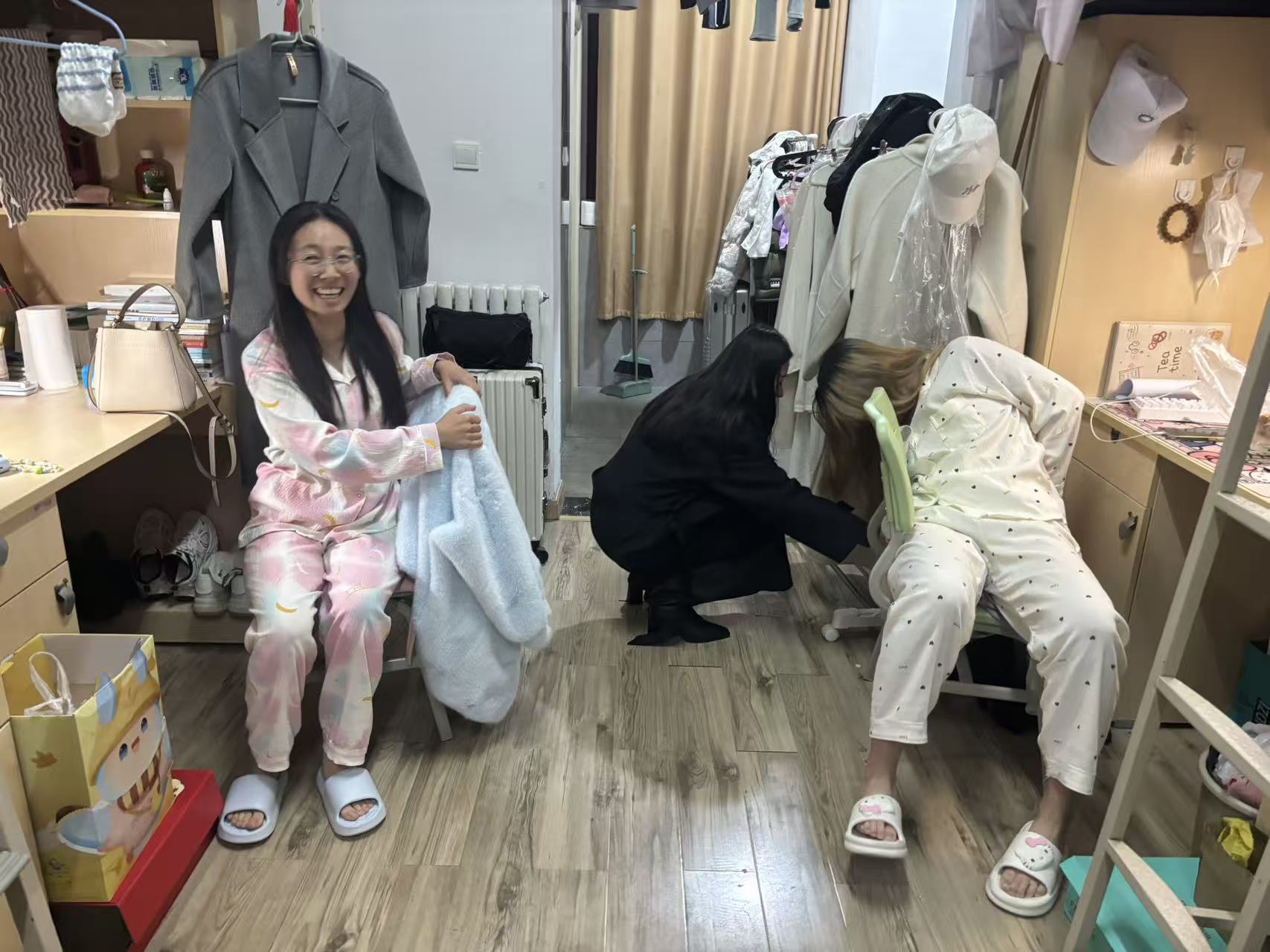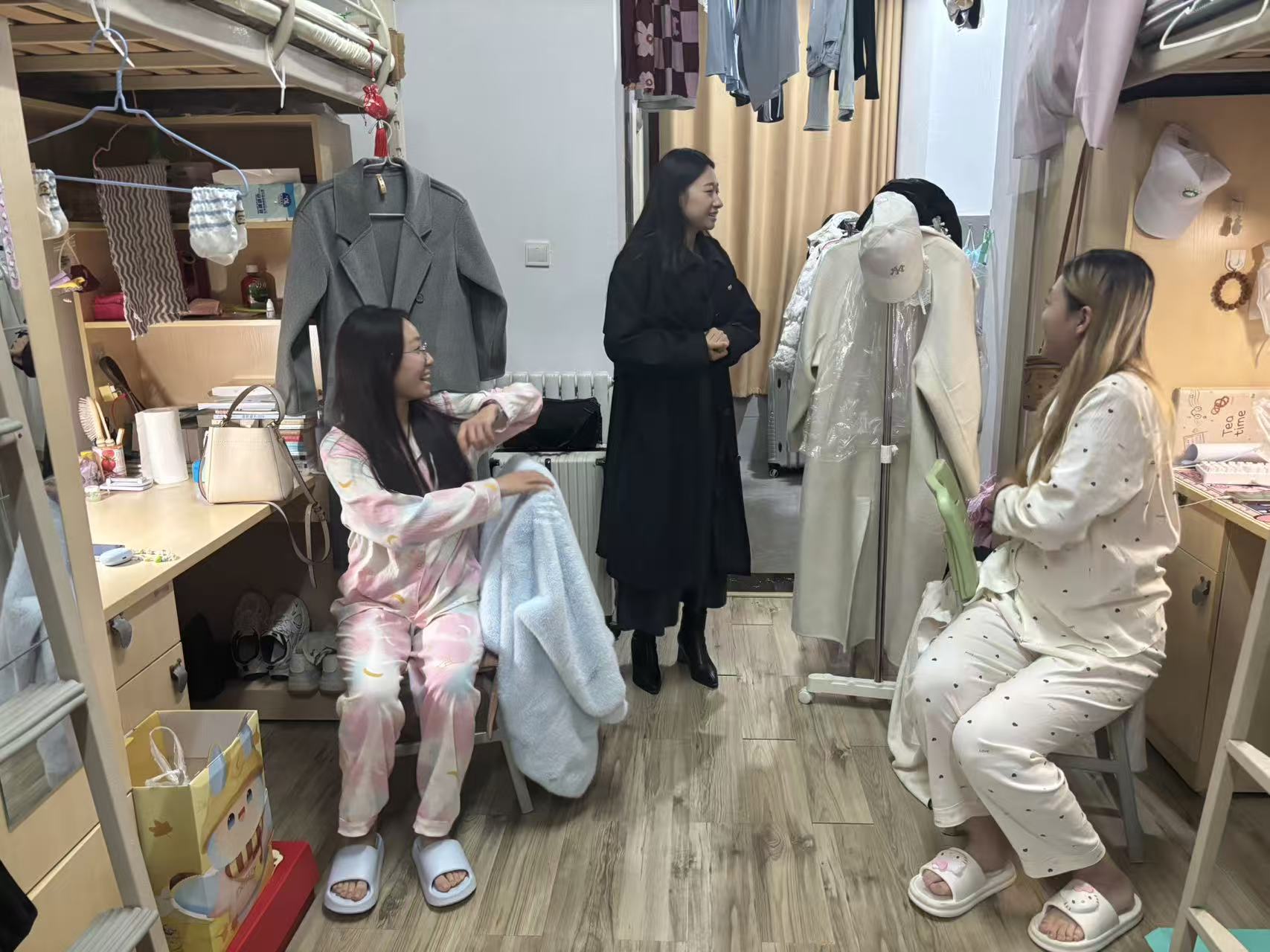 10月22日,辅导员侯雅娴老师也相应积极开展宿舍走访工作,秉持细致关怀之心,轻叩房门与同学们亲切交谈,详询日常作息、学习进度与生活需求;见宿舍整洁,赞学生自律并叮嘱保持卫生习惯;安全排查时侯老师聚焦电器使用,同时关注用电、用水安全细节,确保宿舍生活无任何安全隐患。此外,她还格外关注学生心理健康,通过拉家常的轻松方式,耐心倾听同学们的心声,引导大家在遇到困惑时及时沟通,学会调节情绪,以积极乐观的心态面对大学生活中的挑战。