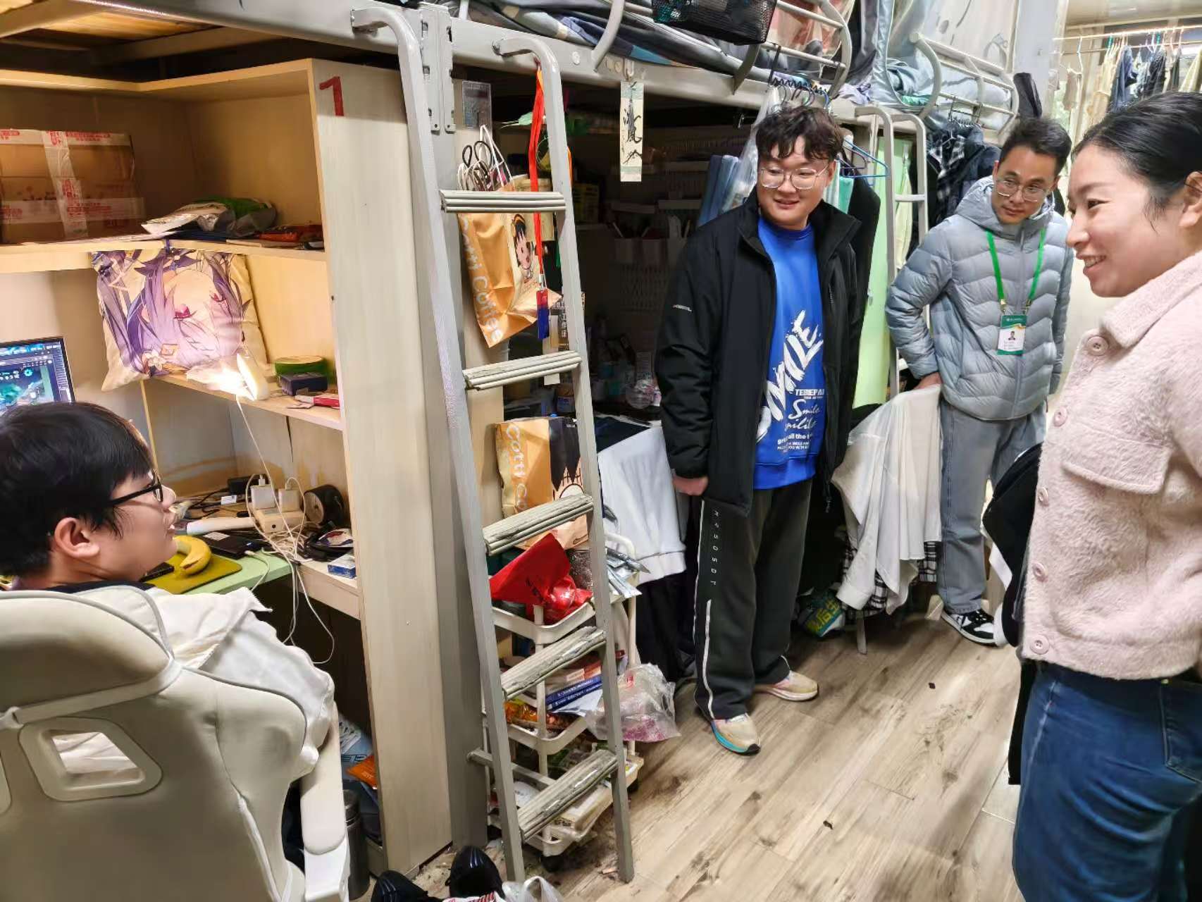 本次“关怀入寝”宿舍走访活动,以走进学生会主席宿舍为契机,充分发挥了学生骨干的榜样引领作用;通过深入交流学业规划与复习安排,切实加强了学风建设;同时结合流感防控,督促宿舍卫生整改,营造了更加整洁健康的生活环境。学院将持续开展宿舍走访活动,不断优化管理服务,为学生的全面成长与校园的和谐发展奠定坚实基础。