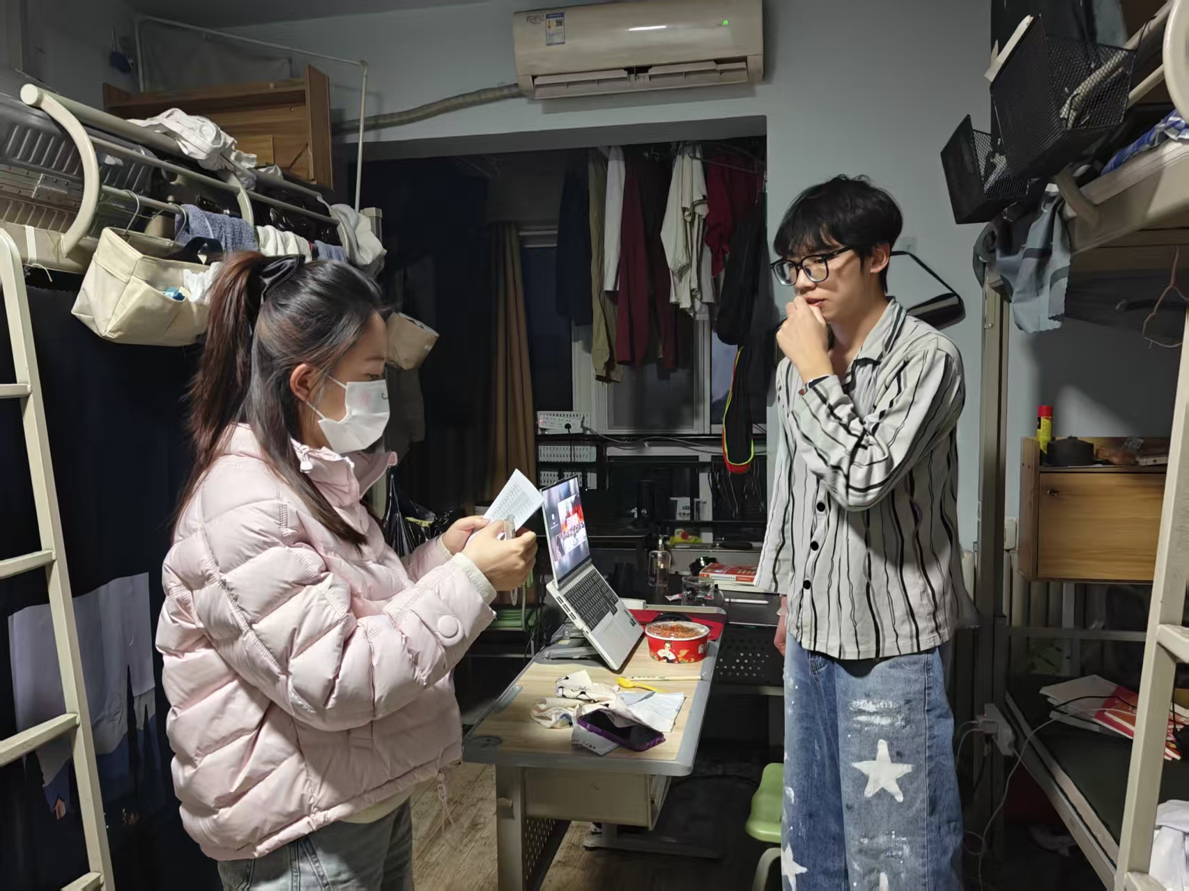 崔亚楠老师开展“暖心走访助备考,安全叮嘱护平安”主题宿舍走访,提醒学生核对教务系统考试安排,精准记录考试时间地点,针对复习焦虑问题分享高效复习方法,鼓励学生劳逸结合、诚信应考,同步兼顾备考指导与安全叮嘱。