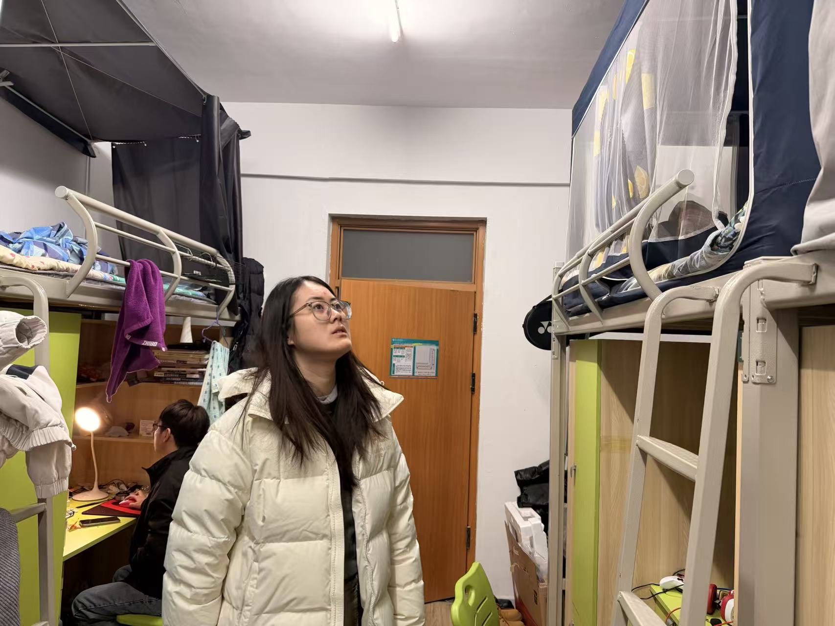 杨业彤老师走访学生宿舍4重点排查违规电器使用与电路私拉乱接情况,关宿舍内务卫生,与学生交流生活适应、学业压力、人际交往等方面情况;排查宿舍吸烟情况,讲解校园禁烟规定与违反后果,引导学生树立自我约束意识。