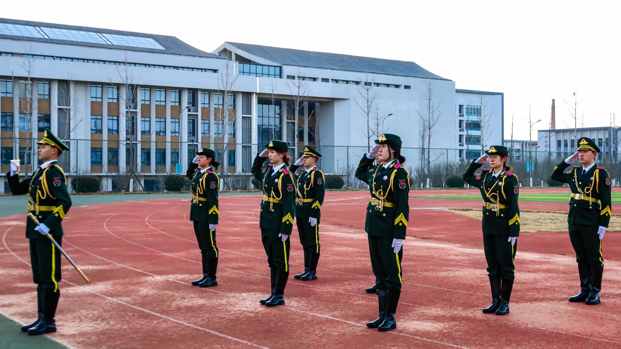晨光熹微,国旗护卫队队员身姿挺拔,步履矫健,昂首护送五星红旗迈向升旗台。他们肩负使命,目光坚定,每一步都彰显着对祖国的赤诚与热爱。随着激昂的《义勇军进行曲》奏响,升旗手奋力挥臂,鲜艳的五星红旗迎风舒展,缓缓升起。全体师生肃立致敬,齐声高唱国歌,歌声嘹亮激昂。这一刻,爱国之心与五星红旗同向同行,青春朝气在晨光中灼灼闪耀。