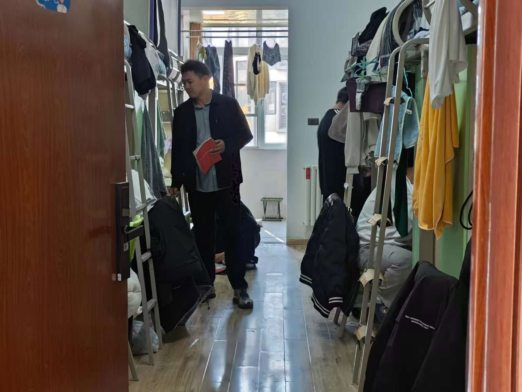 郭芳舟老师聚焦育英书院B栋宿舍,围绕心理健康疏导、宿舍关系融洽及安全隐患排查开展专项走访。与同学们面对面倾心交谈,细致了解心理状态、学习压力与生活困惑,传授沟通技巧,引导大家包容互助、换位思考,化解人际隔阂;重点排查管制刀具、违规电器等违禁品,严肃强调校规校纪与安全危害,切实营造和谐友爱、安全有序的住宿环境,搭建师生信任沟通桥梁。