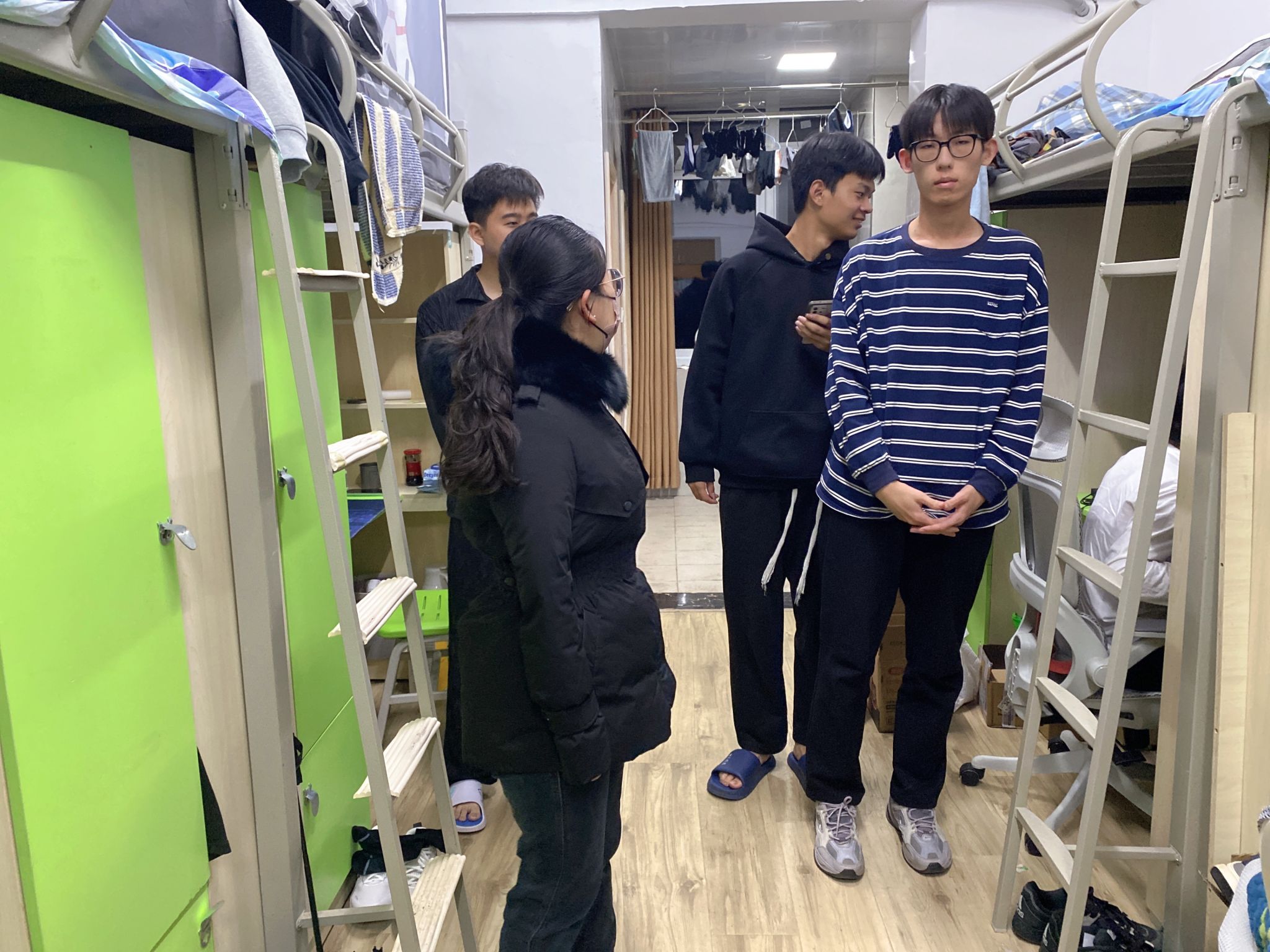 赵齐老师对东岳书院A、瞻岩书院的学生宿舍进行集中走访,总体来看,大部分宿舍干净整洁,学习氛围浓厚,同学们精神状态积极向上。走访中,结合近期气温变化、感冒发烧学生增多的情况,提醒同学们及时就医诊疗,做好宿舍日常通风,添衣保暖御寒,加强体育锻炼提升抵抗力;同时针对个别宿舍存在的卫生死角、用电安全意识薄弱等问题现场提醒整改,对学生在学业压力、人际交往方面的困惑耐心开导,给出针对性建议并建立后续跟踪帮扶意向,切实拉近师生距离,精准掌握学生实际状况。