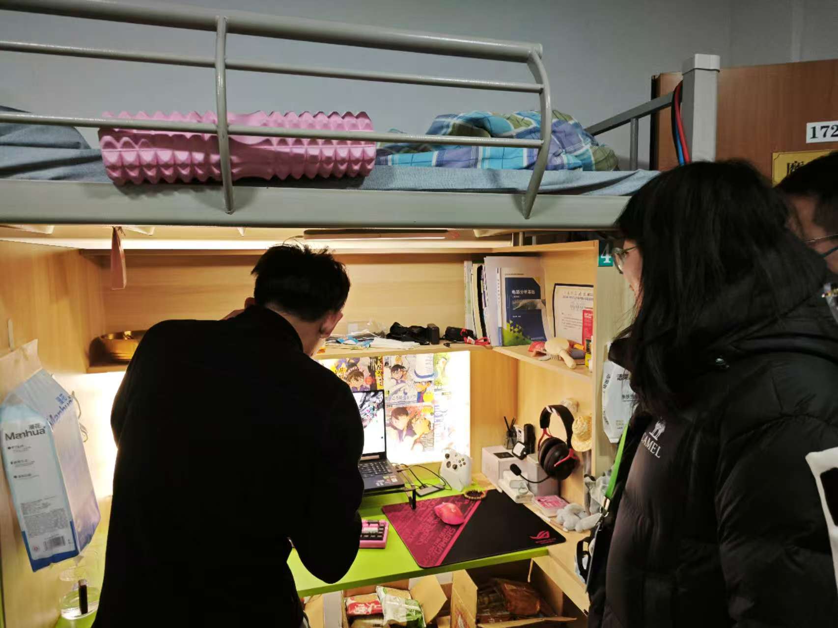 夜幕降临,校园渐趋静谧。为切实了解学生学习生活状态,传递学校的关怀与温暖,12月11日,通信工程学院全体辅导员及学生会生活权益部成员在宋宏越副院长的带领下组成宿舍走访小组,深入学生宿舍开展入寝关怀活动,与同学们面对面交流,倾听心声、解决难题,宿舍里洋溢着浓浓的暖意。